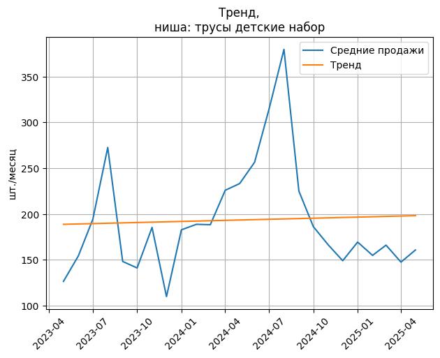 Сезонность в нише средняя. Пик сезонных продаж в нише - август. В ближайшие месяцы можно ожидать сезонного роста продаж до 50%.