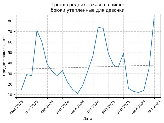 Анализ лучших товаров в нише “брюки утепленные для девочки”