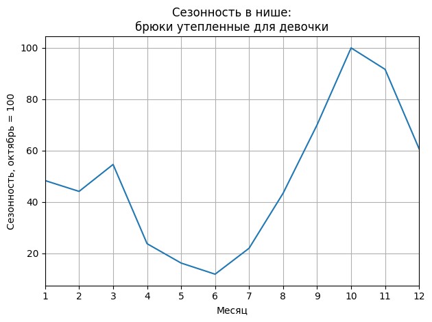 Сезонность в нише сильная. Пик сезонных продаж в нише - октябрь. В ближайшие месяцы можно ожидать сезонного спада продаж до 52%.