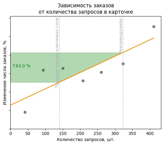 Сейчас в карточке 141 ключевых запросов категории. Оптимизация приведет к показам по новым ключевым запросам и, возможно, росту выручки до 63%.