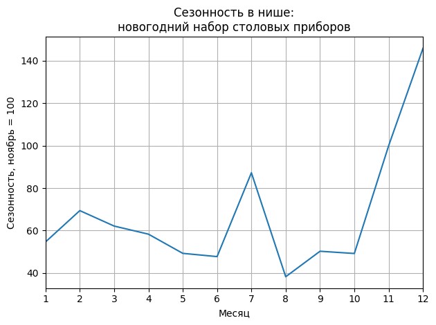 Сезонность в нише сильная. Пик сезонных продаж в нише - декабрь. В ближайшие месяцы можно ожидать сезонного спада продаж до 46%.