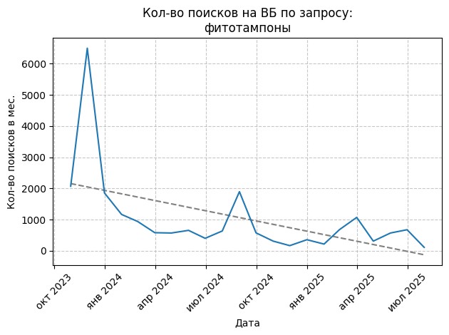 За год произошло значительное снижение среднего количества поисков на ВБ на 111%.