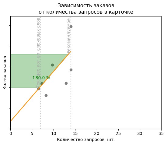 Сейчас в карточке 7 ключевых запросов категории. Оптимизация приведет к показам по новым ключевым запросам и, возможно, росту выручки до 80%.