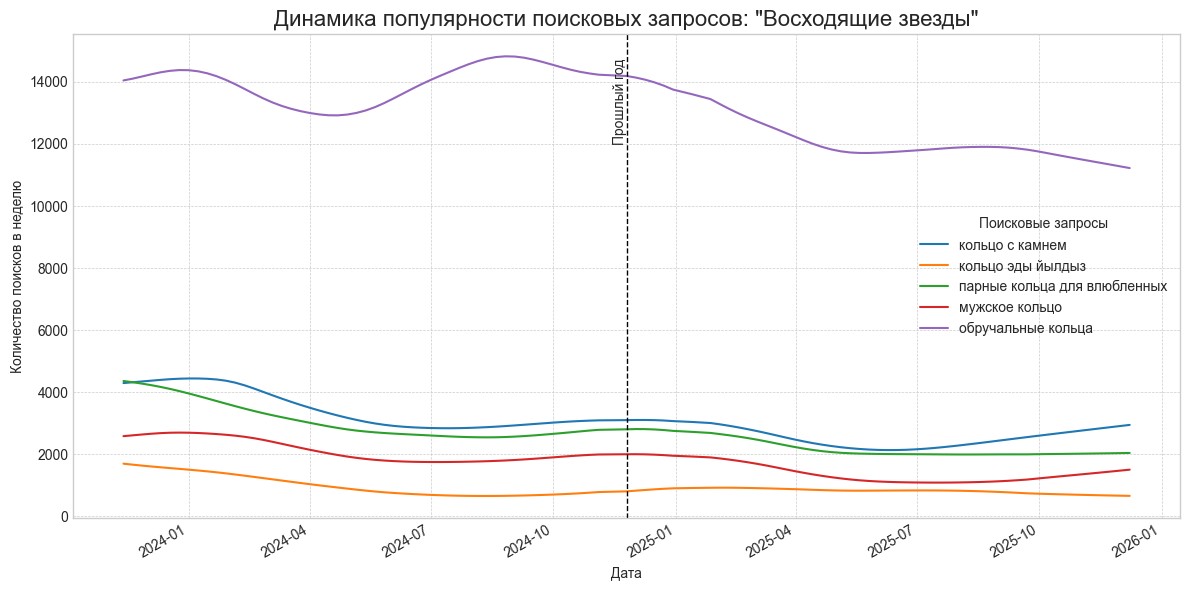 Эти поисковые запросы долгое время были в тени, но в последние месяцы их популярность резко взлетела. Это могут быть как будущие ‘золотые тренды’, так и мимолетная мода. Требуют пристального внимания и быстрой реакции.