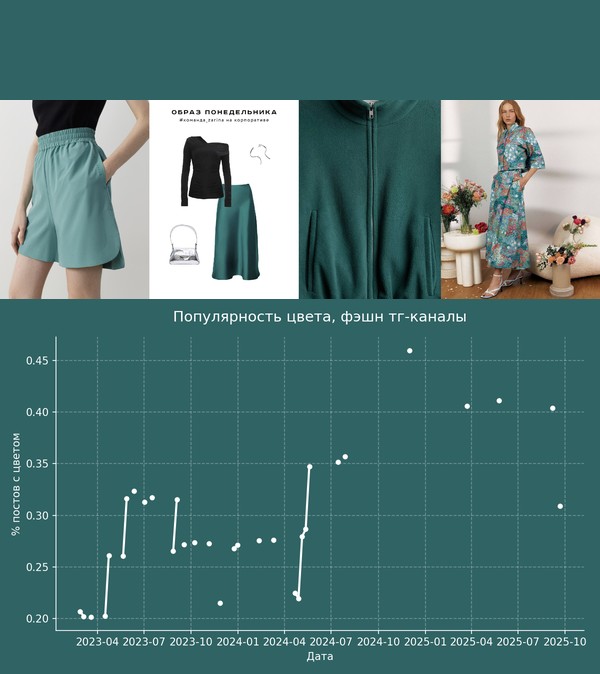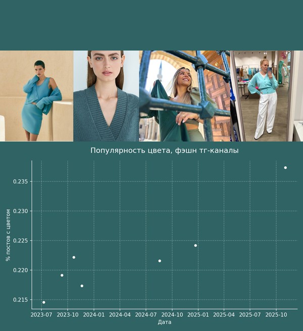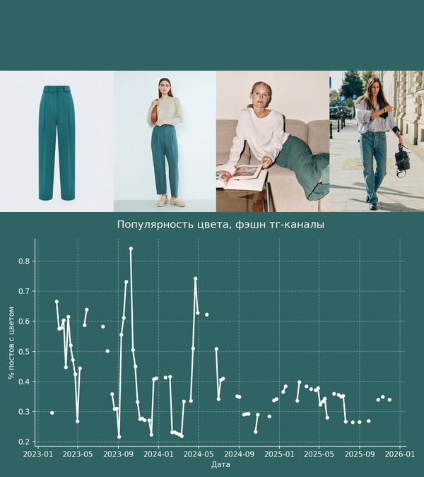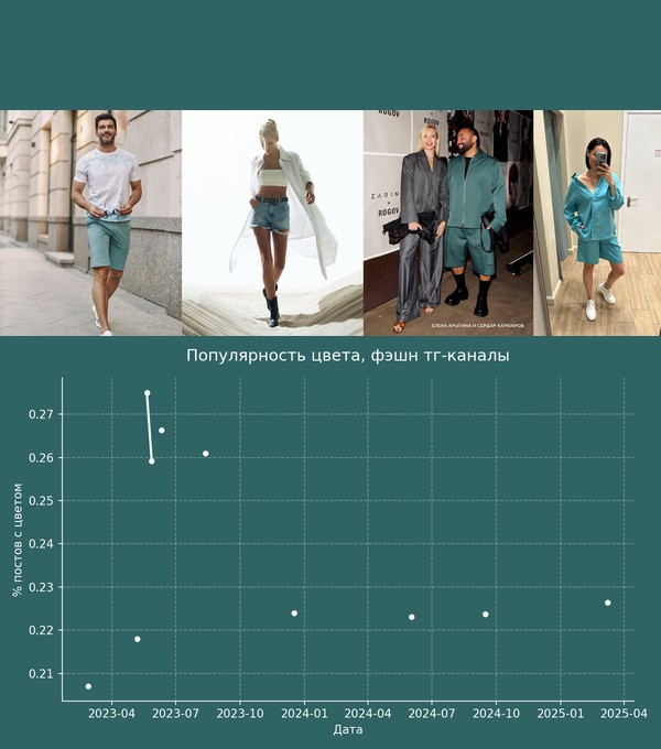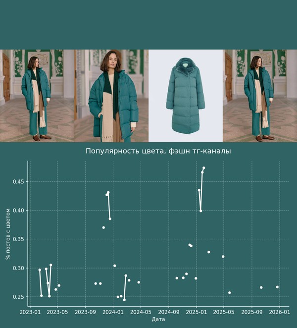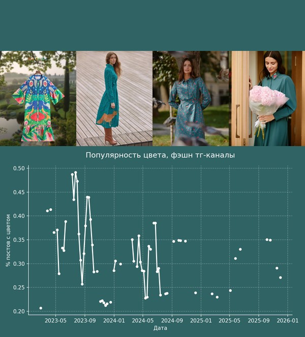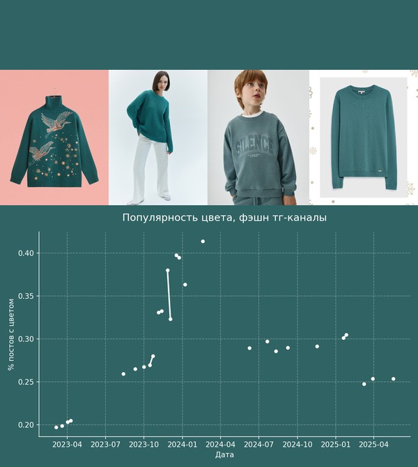 Я решил посмотреть динамику этого цвета на российских данных. Здесь анализ цветов с Delta E = 10. Это значит, что анализировались достаточно близкие цвета.