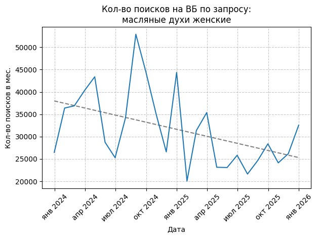Количество поисков на ВБ по основному запросу