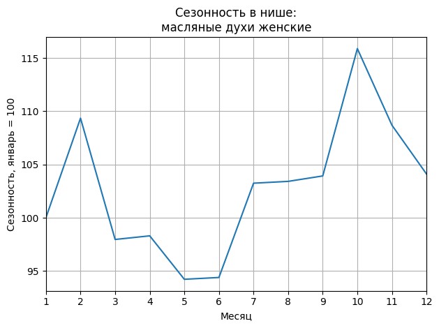 Сезонность в нише слабая. Пик сезонных продаж в нише - октябрь. В ближайшие месяцы сезонность не будет заметно влиять на продажи.