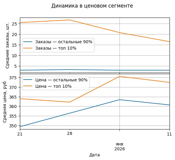 Динамика в ценовом сегменте за последние 4 недели