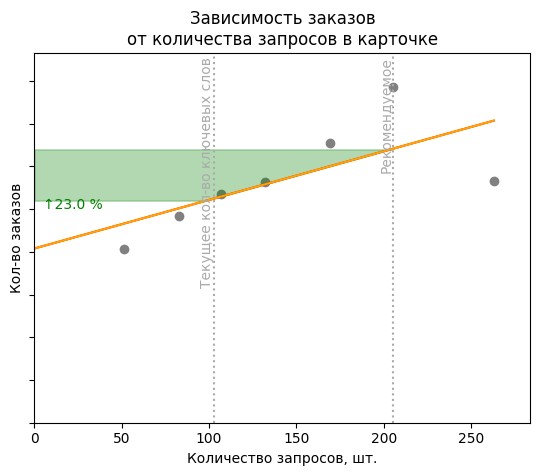 Сейчас в карточке 103 ключевых запросов категории. Оптимизация приведет к показам по новым ключевым запросам и, возможно, росту выручки до 23%.