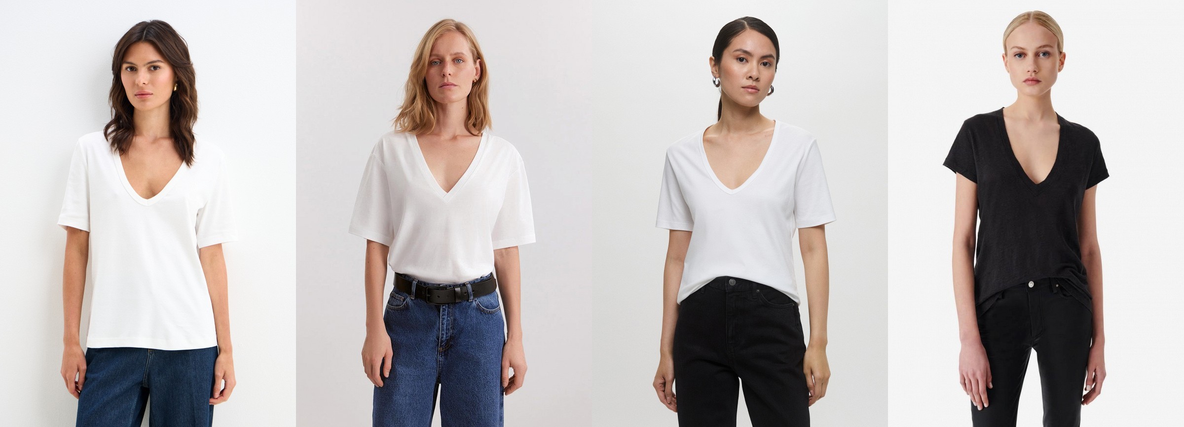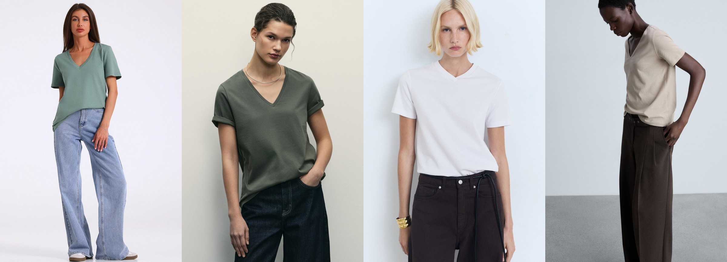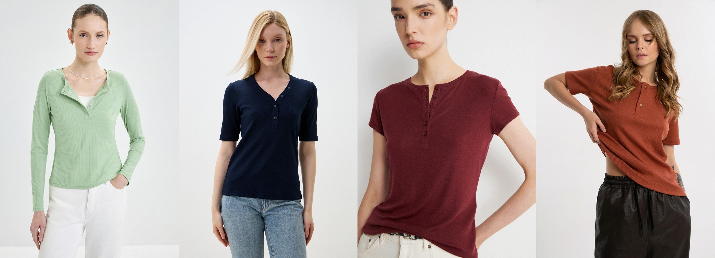 Эти атрибуты всё ещё сверхпредставлены в товарах-лидерах — они продолжают приносить деньги сегодня. Но спрос методично смещается в другую сторону, причём в случае с хенли и глубоким V-вырезом — обвально.