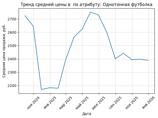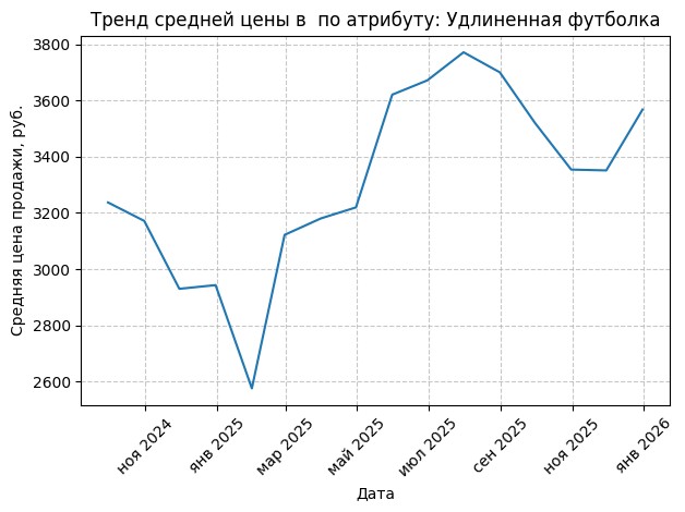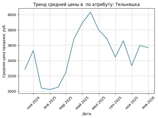 За год наблюдался значительный рост средней цены продажи в по атрибуту, составивший 45%.
