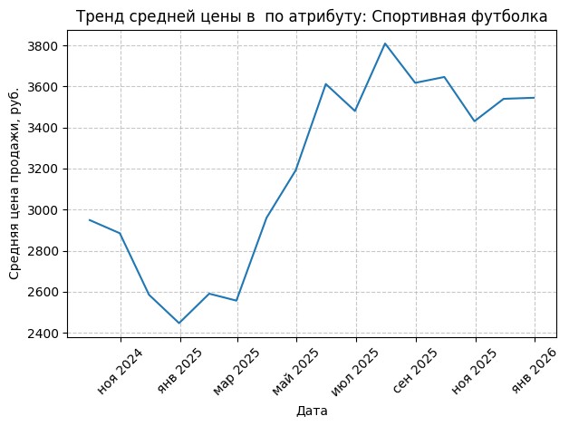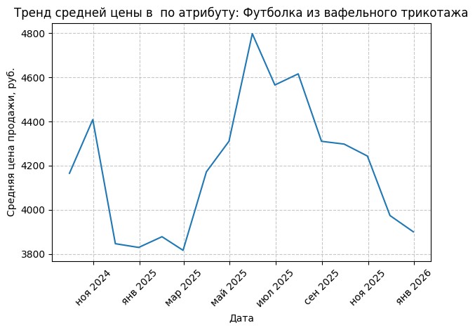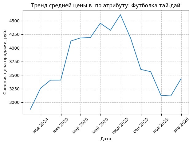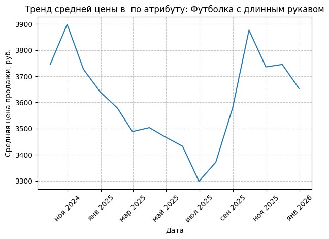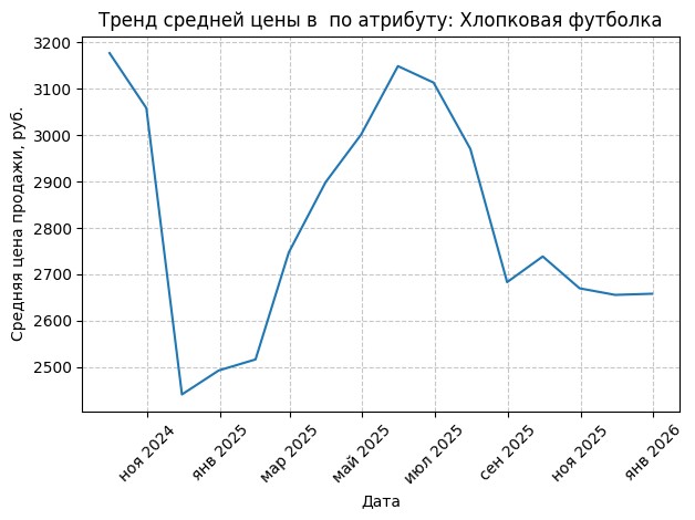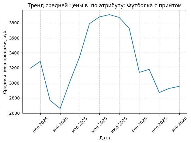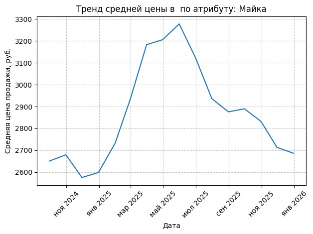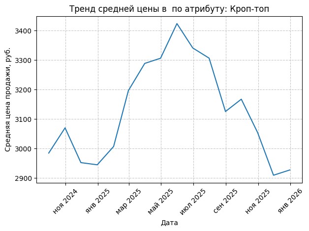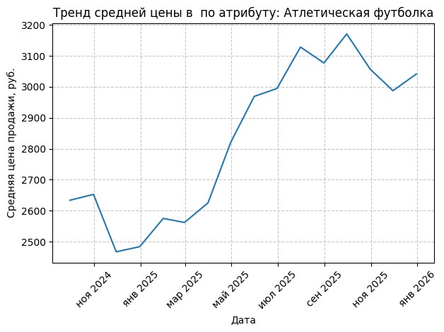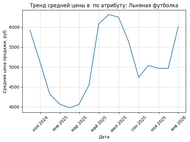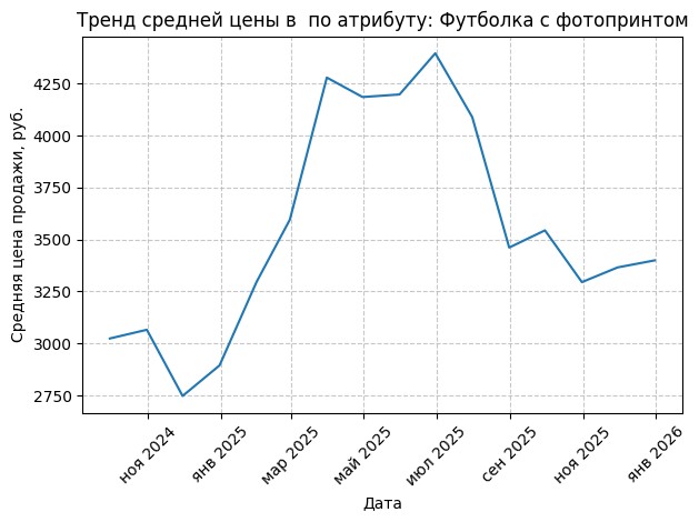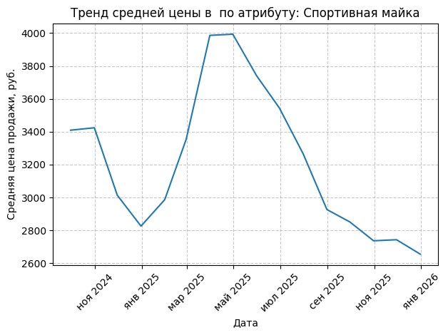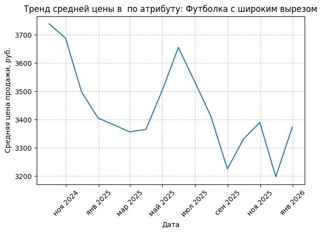 За год наблюдался значительный рост средней цены продажи в по атрибуту, составивший 23%.