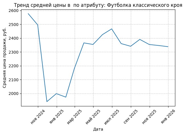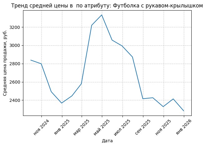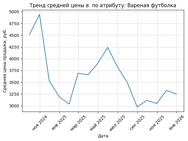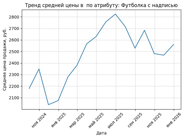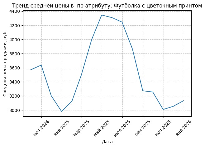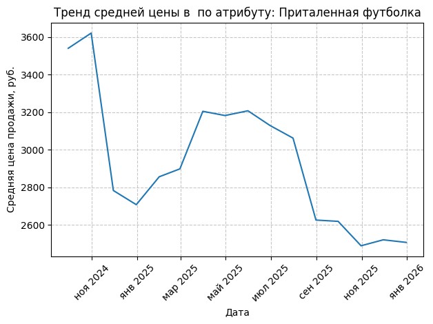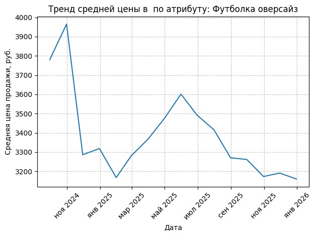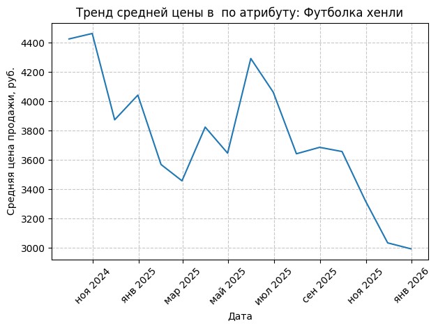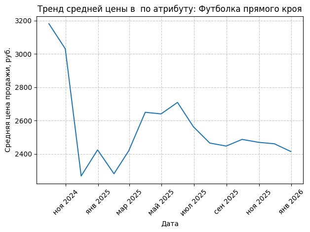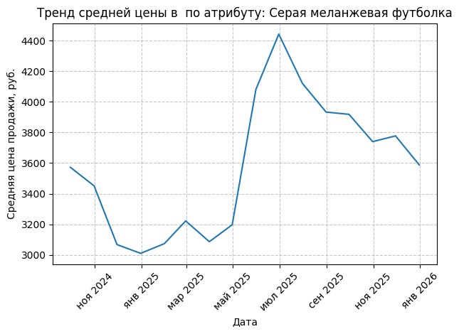 За год наблюдался значительный рост средней цены продажи в по атрибуту, составивший 21%.