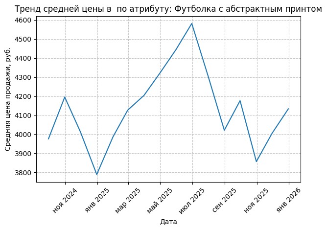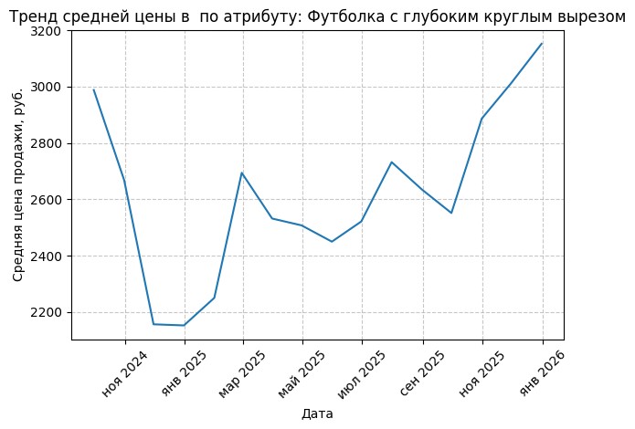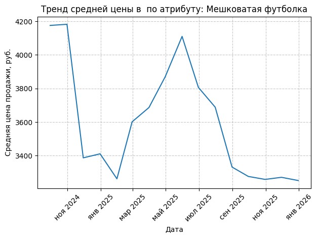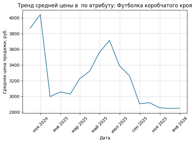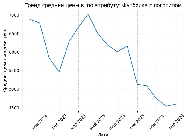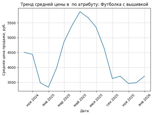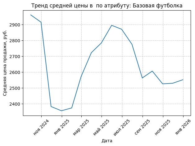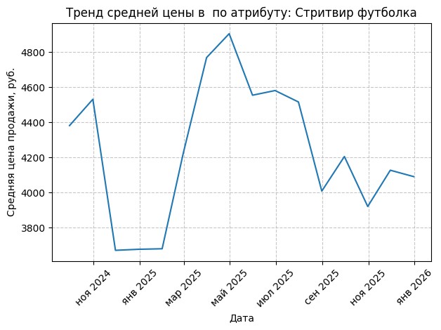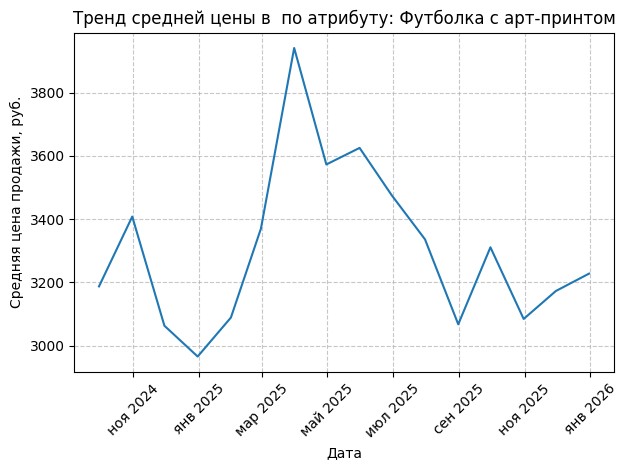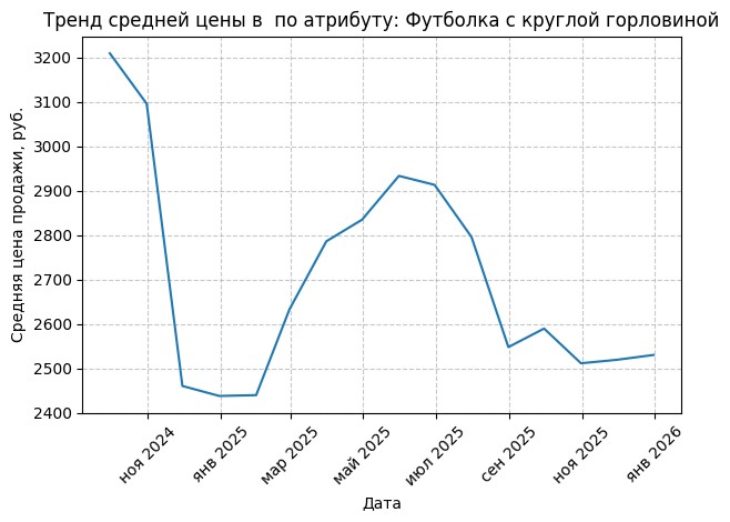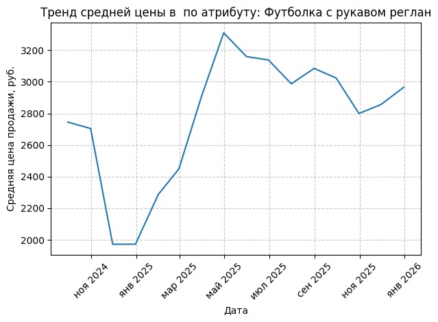 За год наблюдался значительный рост средней цены продажи в по атрибуту, составивший 21%.