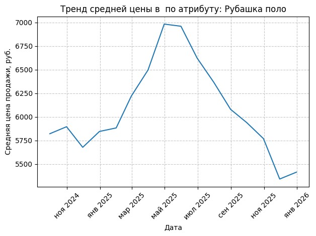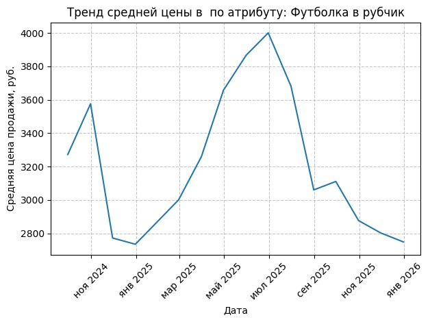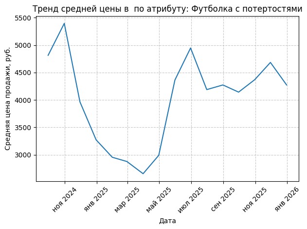 За год наблюдался значительный рост средней цены продажи в по атрибуту, составивший 50%.