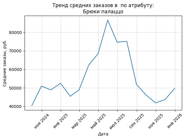 Это выглядит как устойчивый спрос на более “собранные/акцентные” материалы. Неочевидно, потому что доли небольшие, но сочетание (рост + присутствие в топе) у кожаных брюк — сильный сигнал.