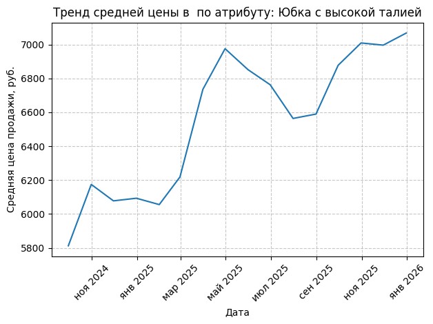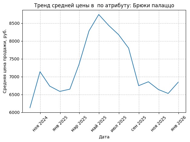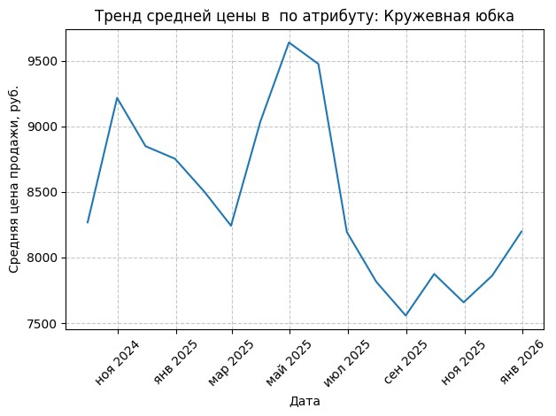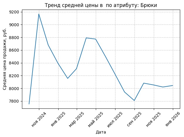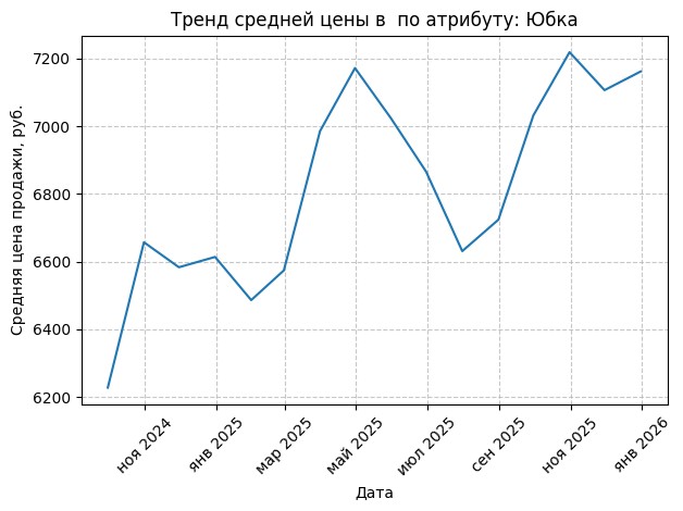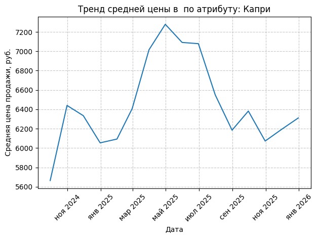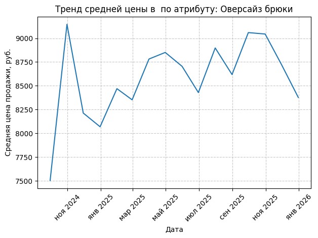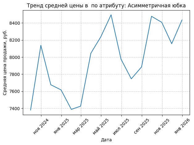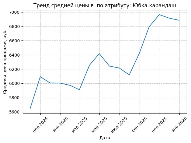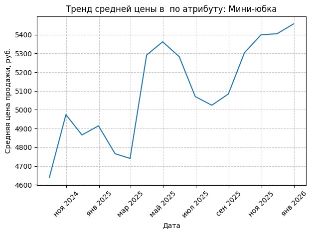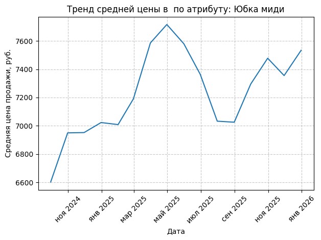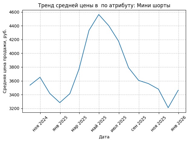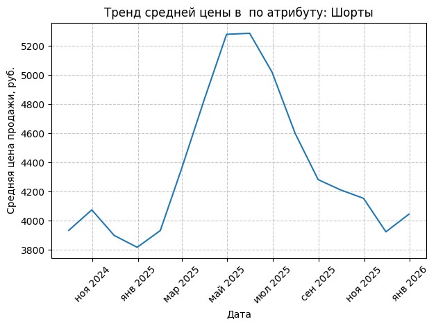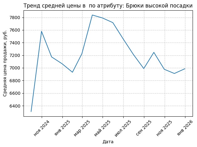 За год наблюдался значительный рост средней цены продажи в по атрибуту, составивший 25%.