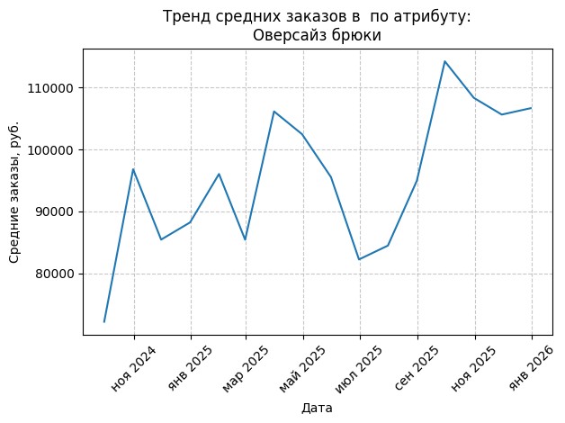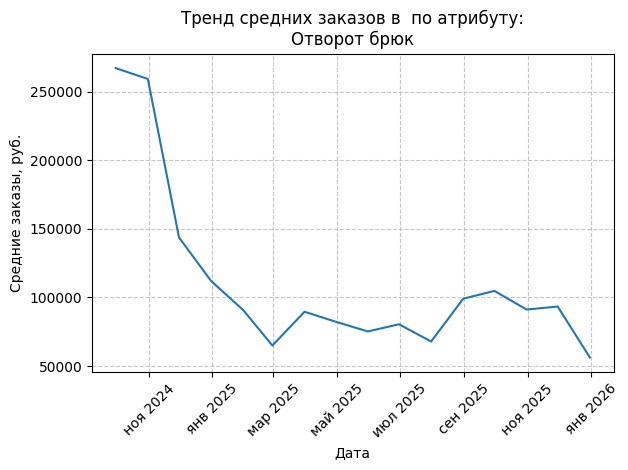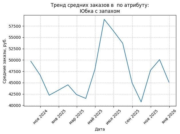| Атрибут | Популярность среди топ-10% товаров, % | Популярность среди остальных 90% товаров, % | Разница, п.п. | Динамика выручки по заказам, %, год-к-году |