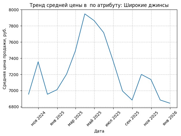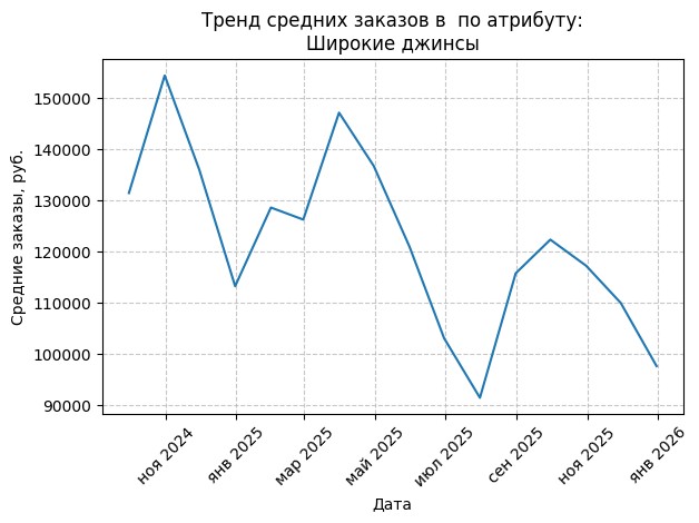 Вывод: спрос может перетекать от “wide jeans как базового тренда прошлых сезонов” к другим интерпретациям объёма/силуэта (оверсайз‑брюки, клёш). То есть “ширина” остаётся, но форма и материал меняются.