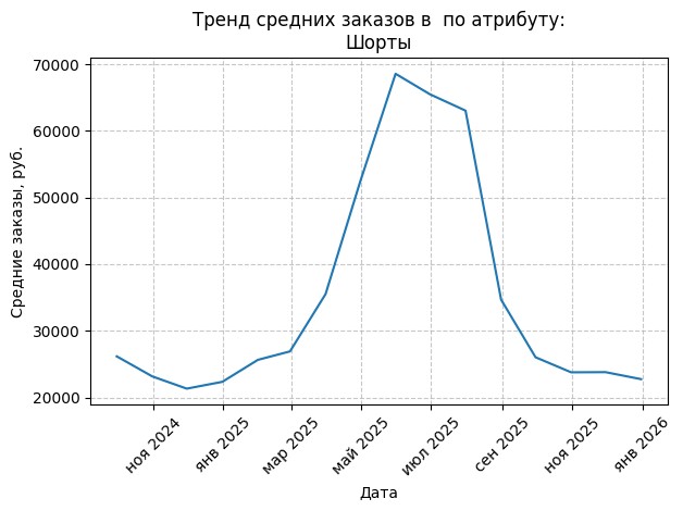 За год наблюдался значительный рост средних продаж в по атрибуту, составивший 31%.