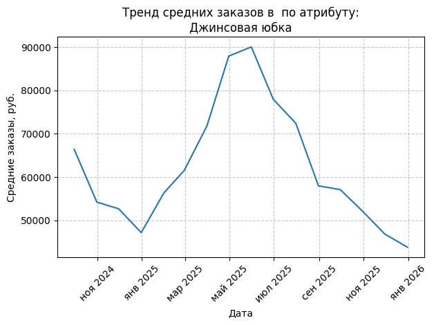 Неочевидный вывод: “бестселлерность” и “рост сегмента” расходятся. Топ по выручке удерживается за счёт денима, хотя сам спрос по этим атрибутам заметно снижается. Это похоже на инерцию ассортимента/привычки покупателя: “топ” продолжает продаваться, но рынок под ним сжимается.