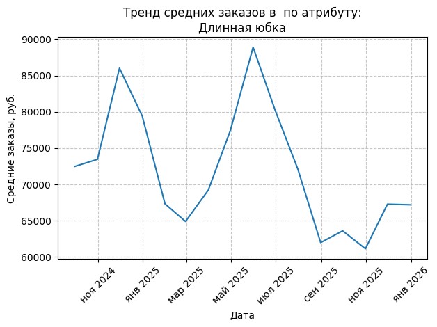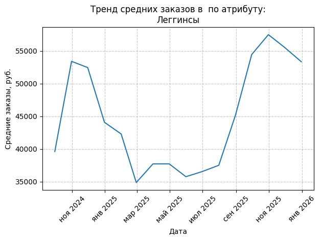 Средняя выручка (по заказам) по атрибуту - 61600 руб./месяц. Максимальная выручка 963000 руб./месяц, на 1460% больше среднего по атрибуту, была при цене от 30000 до 35000 руб. руб.