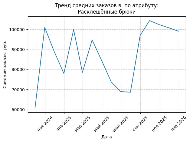 - Расклешённые брюки: +27% YoY, доли ~1.5%