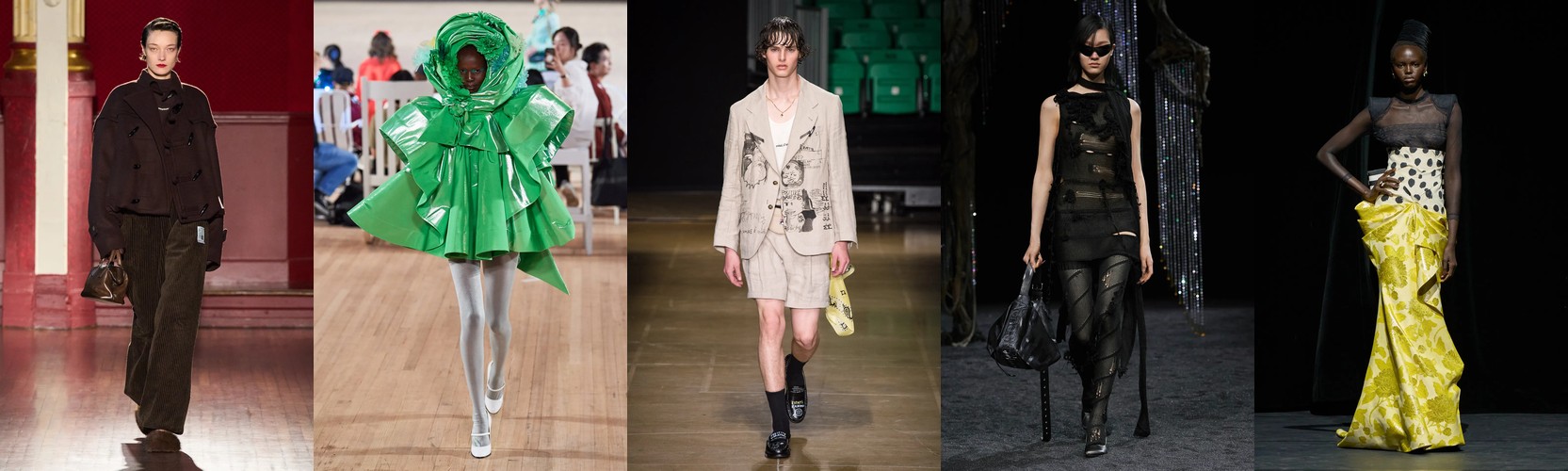 Ядро коллекции: Агрессивный статус и радикальный авангард Показ строится на мощном импульсе «Статуса и Власти» (0.65). Модель видит здесь не классический успех, а «силовую эстетику»: одежду, которая требует пространства и заявляет о превосходстве. Этот сигнал усиливается за счет «Авангардного Бунта» (0.40) — традиционные нормы одежды не просто игнорируются, а намеренно деконструируются, превращая привычные вещи в радикальные арт-объекты.