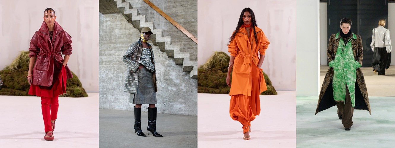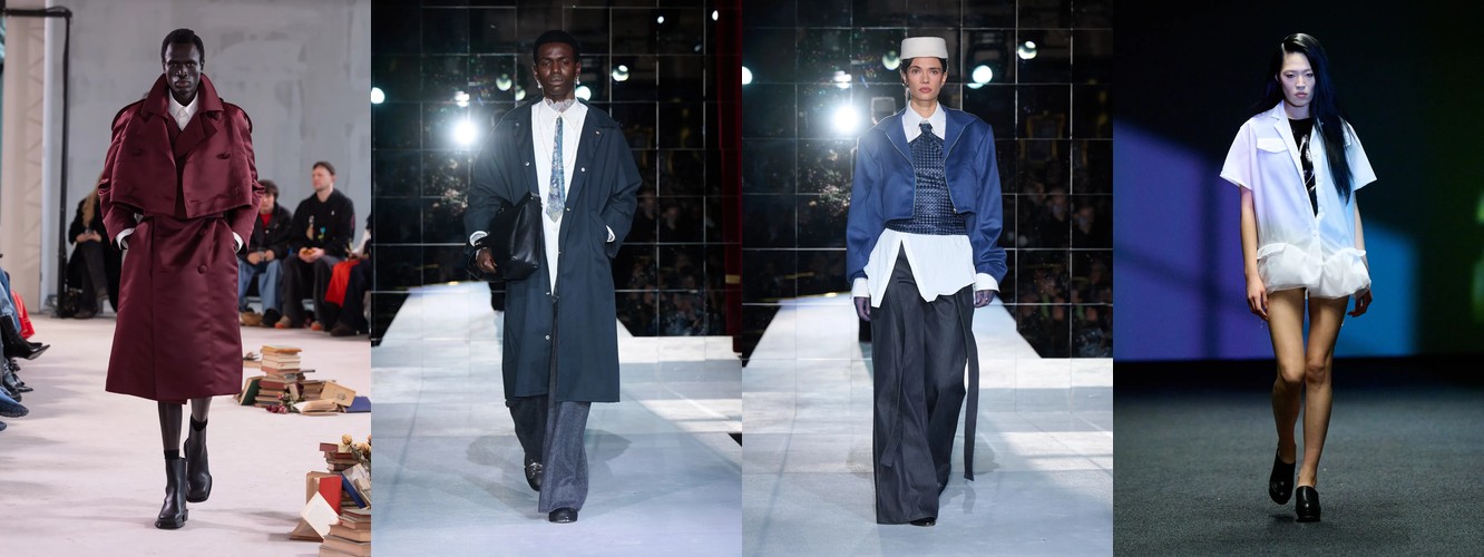 Один из самых неочевидных, но структурно значимых процессов сезона — вертикальное перераспределение объёма в силуэте. Объём не исчезает — он мигрирует.
