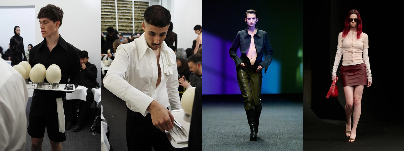 Но здесь важно семантическое различие. Берлинский формализм — это не миланский формализм. Richert Beil подают его буквально «на тарелке» вместе с латексом и кожей в формате театрализованного ужина. UNVAIN дебютируют с архитектурными силуэтами среди восточноазиатских скульптур. Костюм здесь — не инструмент конформизма, а инструмент перформанса. Берлин не надевает пиджак, чтобы пойти в офис. Он надевает пиджак, чтобы заявить о дисциплине как новой форме бунта.
