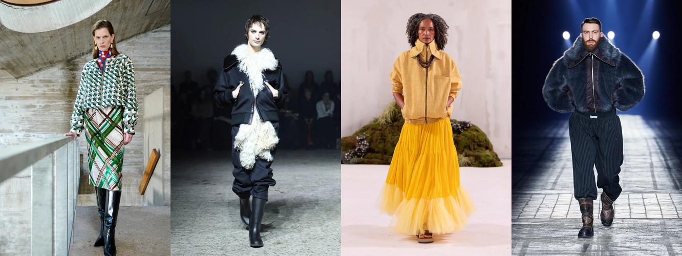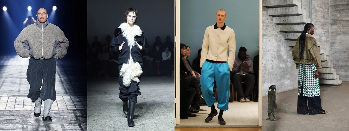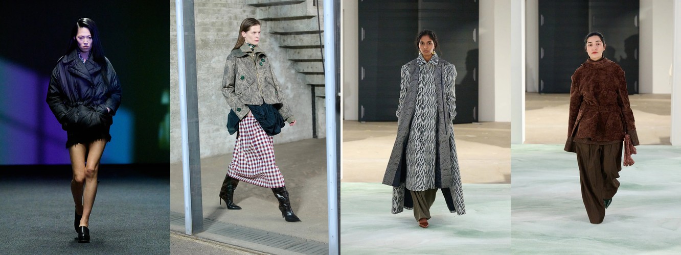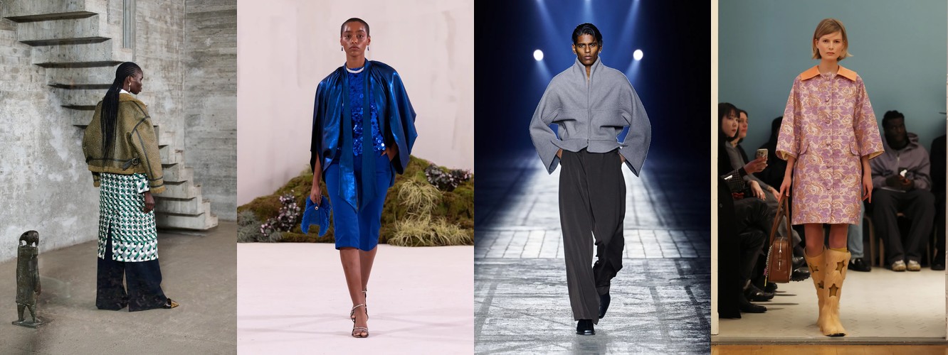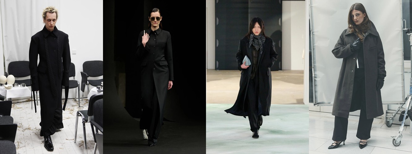 Одновременно верхняя часть тела наращивает архитектурность: пальто (+3,75 п.п.), куртки (+2,68 п.п.), укороченное пальто (+2,58 п.п.), широкие плечи (+1,11 п.п.). Длина верхней одежды при этом сокращается — макси-пальто теряет 1,72 п.п., а укороченные формы (пальто: +2,58, куртка: +1,53) агрессивно растут.