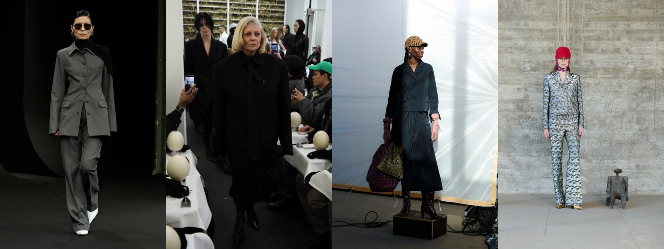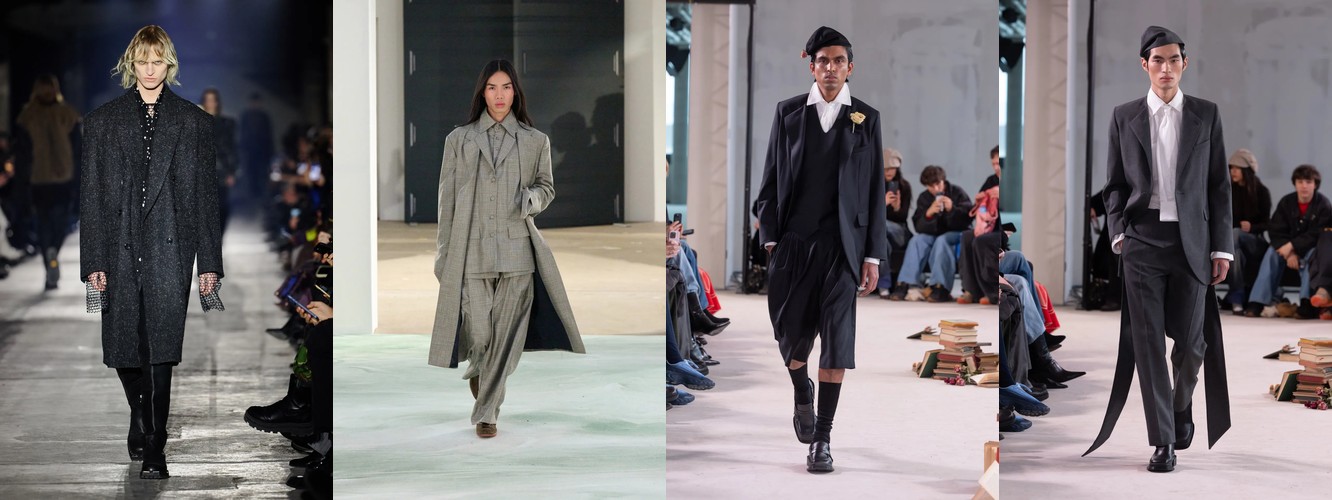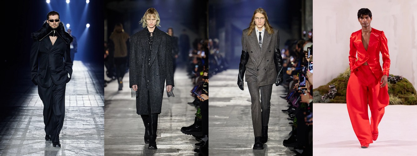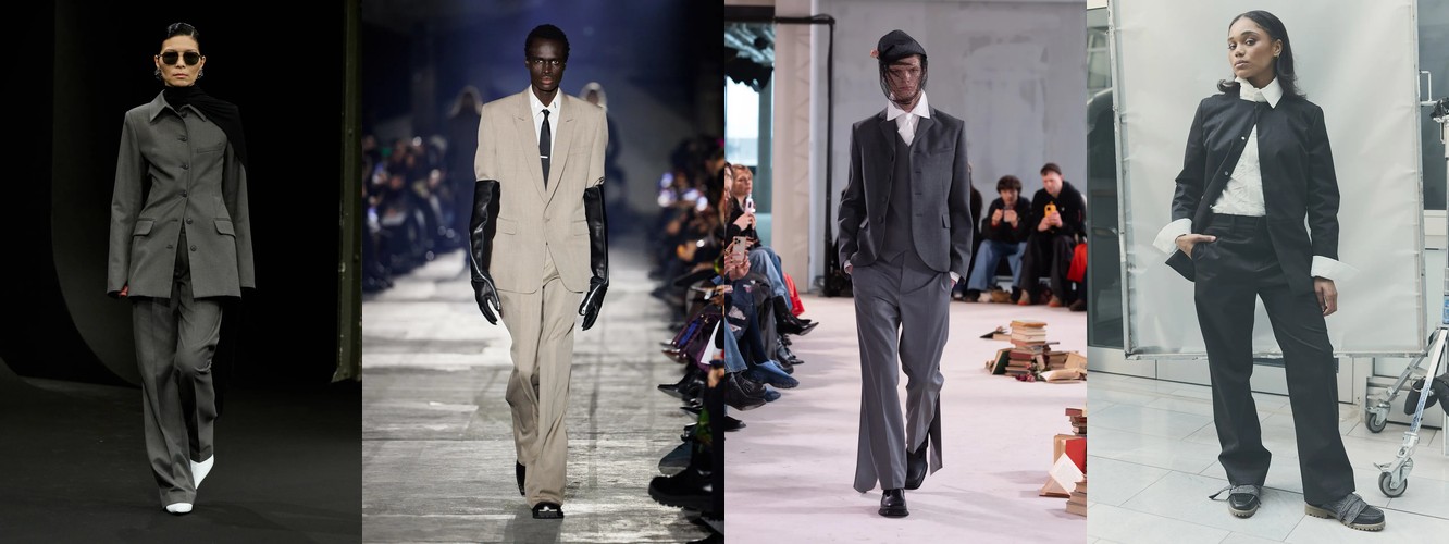 Цифры выстраиваются в безошибочную логику: костюм (+1,98 п.п., охват +13), блейзер (+1,17 п.п., охват +13), смокинг (+1,13 п.п.), преппи (+1,17 п.п.), широкие плечи (+1,11 п.п.). Каждый из этих элементов по отдельности — просто рост категории. Вместе они формируют когерентный силуэт власти: структурированный торс, акцентированная линия плеча, портновская посадка.