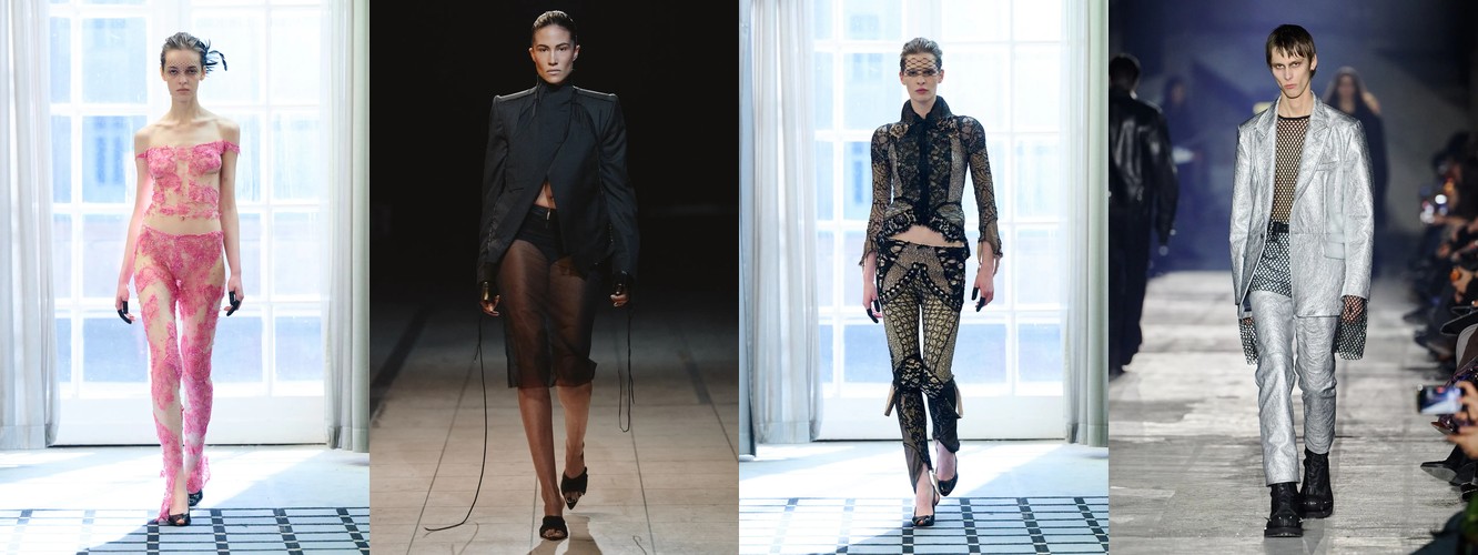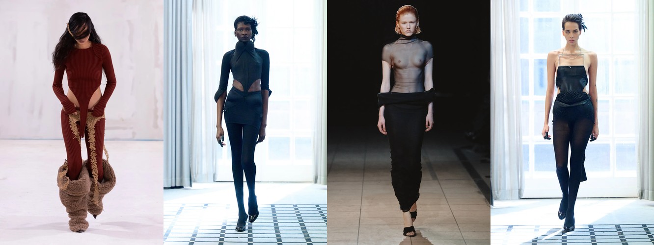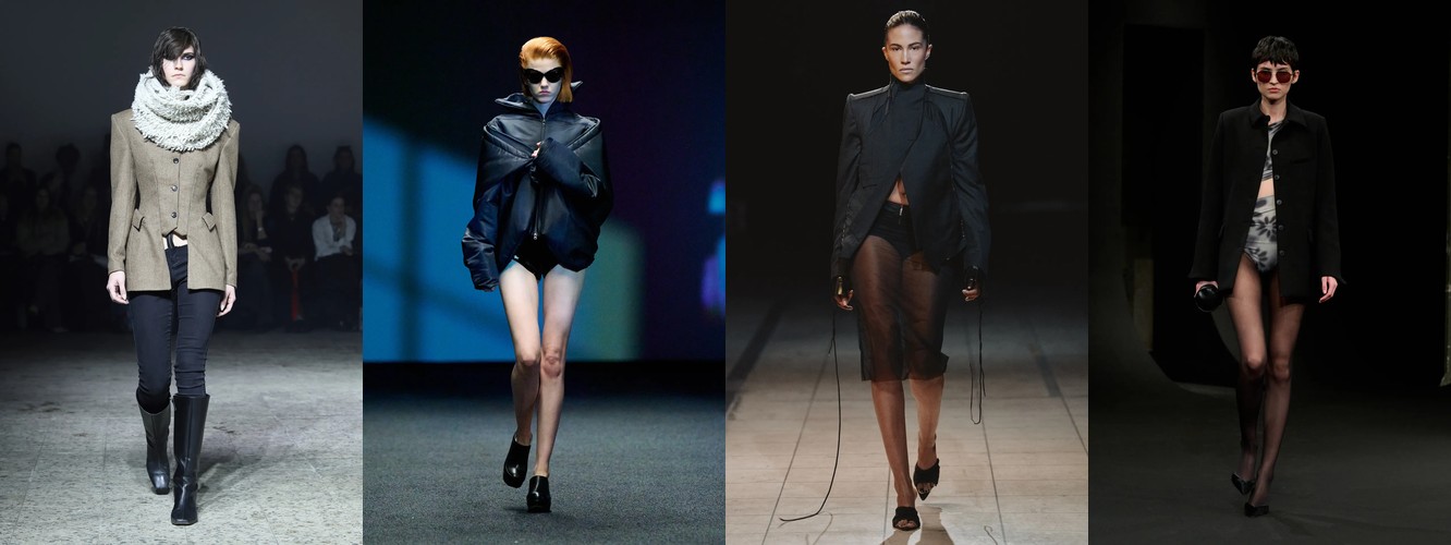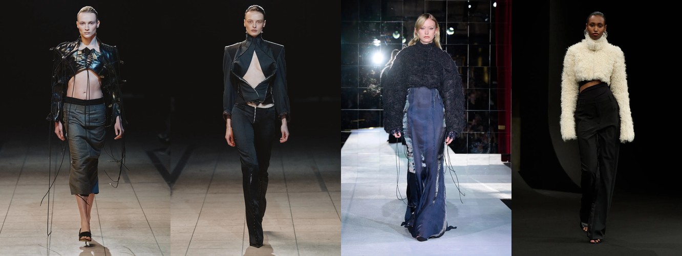 Результирующая пропорция — это перевёрнутый треугольник: массивный, скульптурный, декорированный верх и лаконичный, чёткий низ. Силуэт, который исторически ассоциируется с властными архетипами 1940-х и 1980-х, но в берлинской интерпретации лишённый ретро-ностальгии. Это не цитирование, а реинжиниринг пропорции — переосмысление того, где на теле находится «центр тяжести» образа.