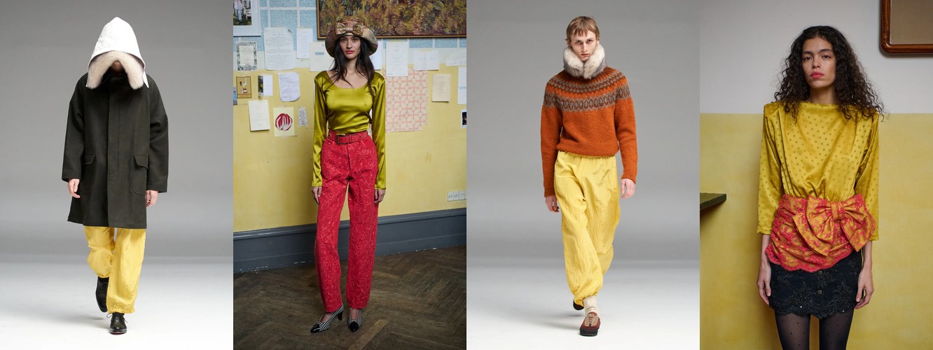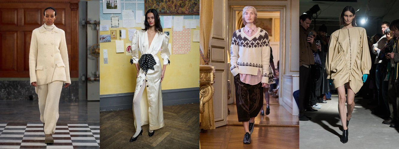 Lou de Bètoly — идеальная иллюстрация: ручное вязание крючком, вышивка бисером, блошиные находки, переработанные в высокую моду. SF1OG работает с «потёртым кашемиром» и «прожившим жизнь» винтажным льном. Тактильность здесь — это не просто текстура, это биография материала, его история и аутентичность.