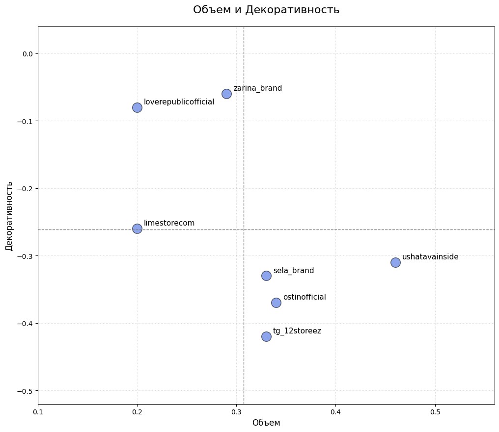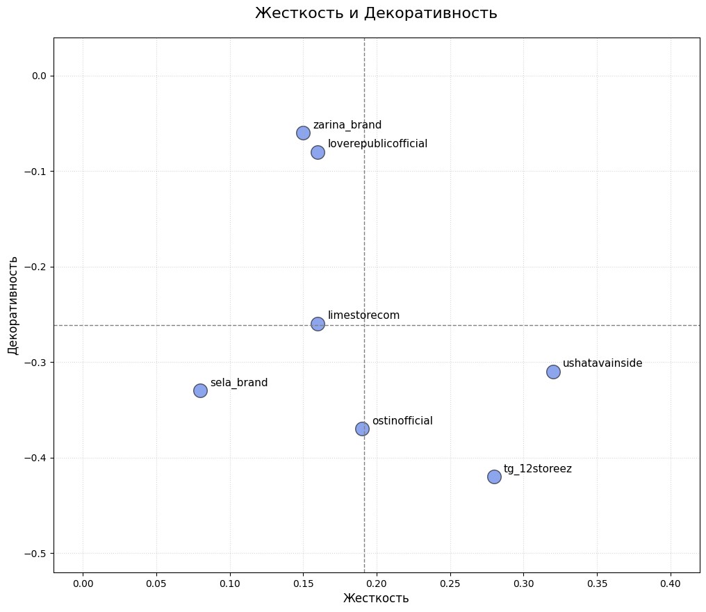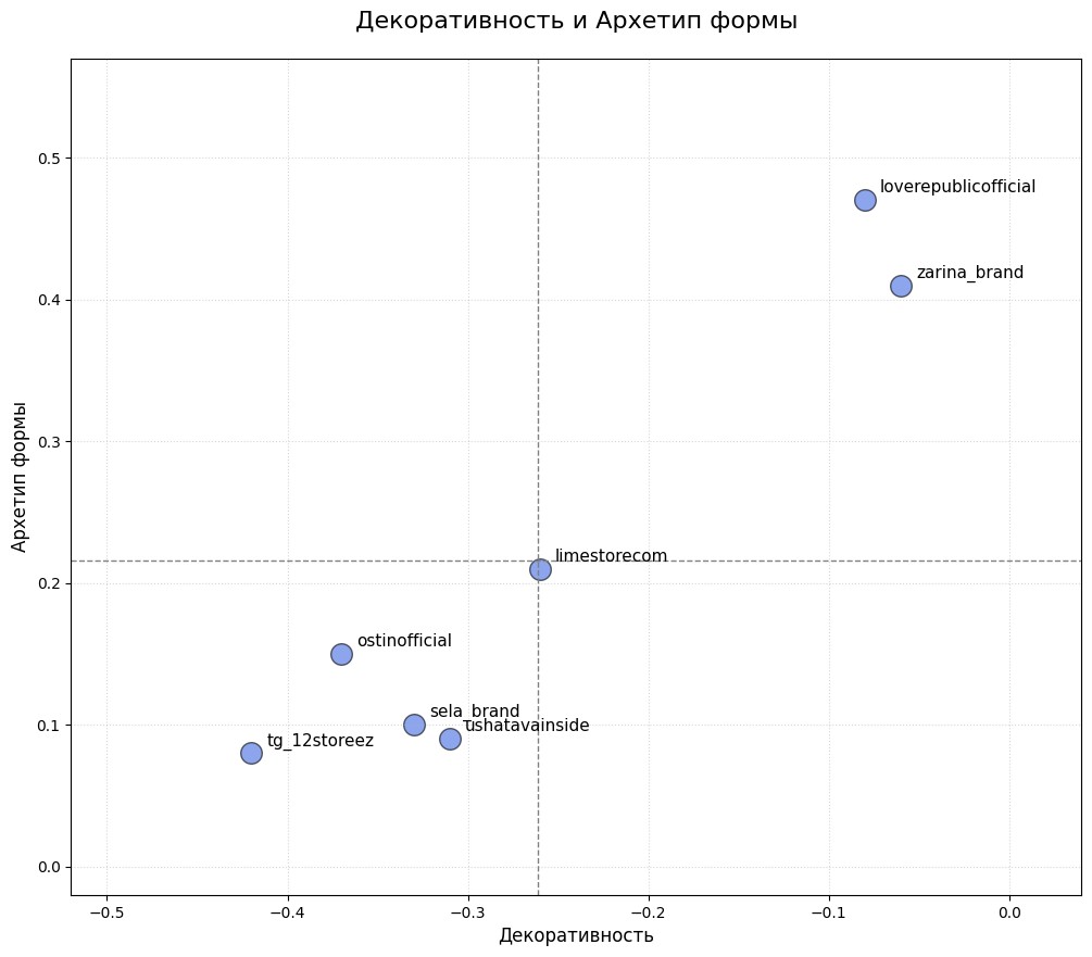 Ни один бренд не вышел в положительную декоративность. Диапазон: от −0.06 до −0.42.