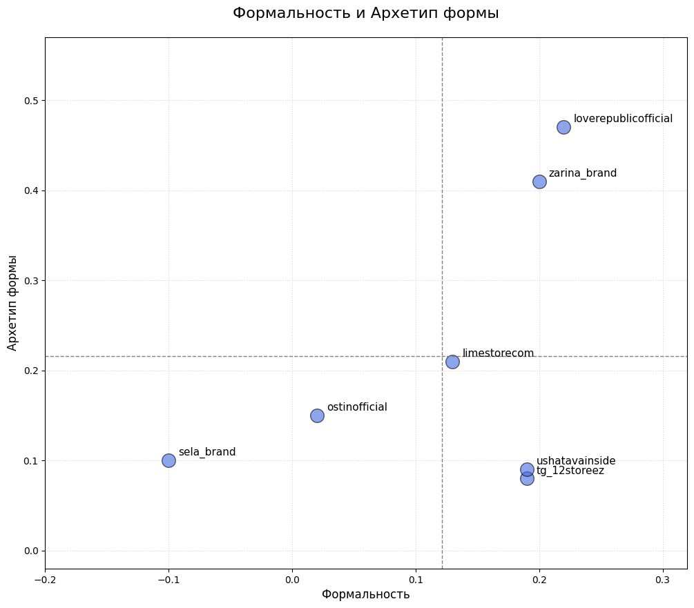 | Формальность | Объём | Жёсткость | Декоративность | Архетип | |