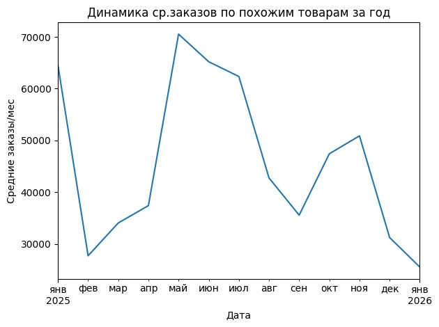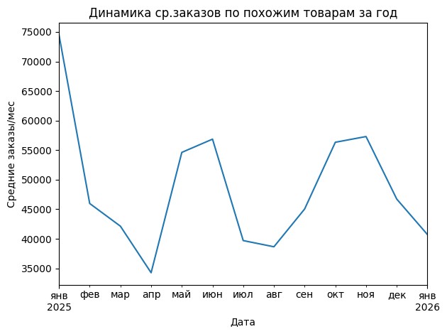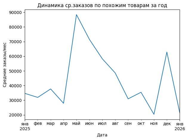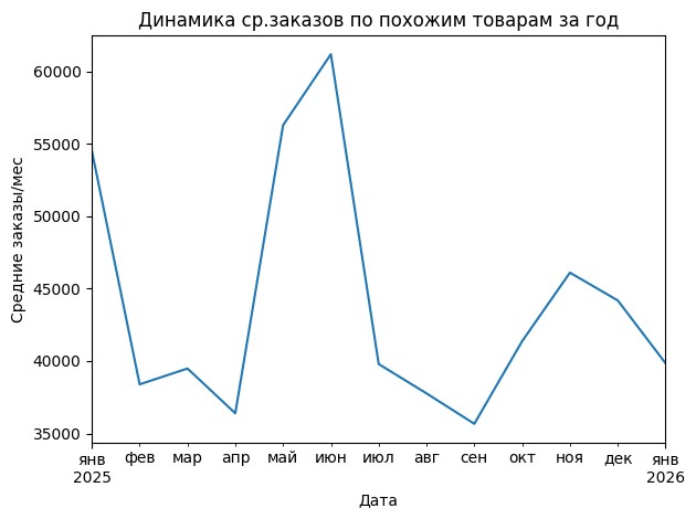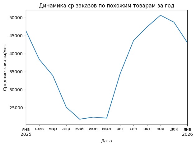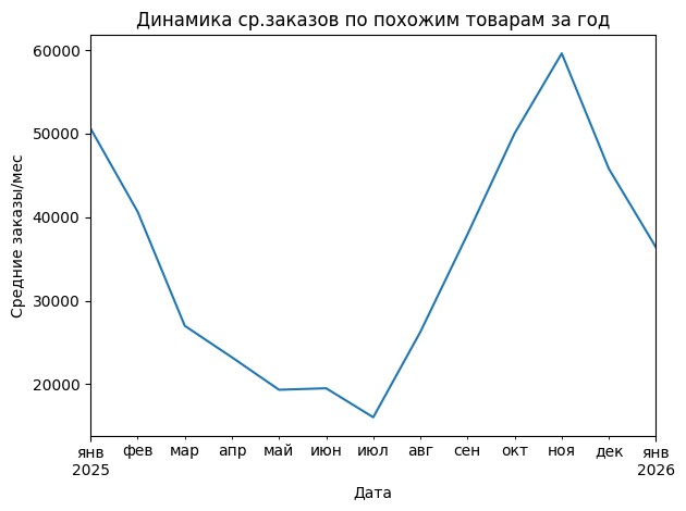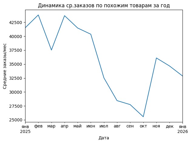 Изменение средних заказов на Ламоде по похожим товарам за год составило: -41.0%