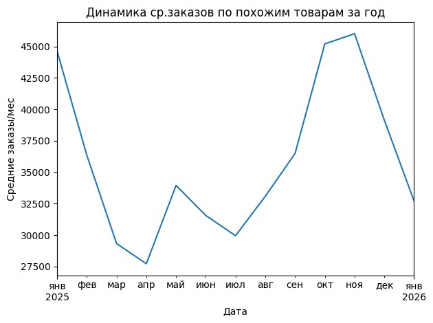 Изменение средних заказов на Ламоде по похожим товарам за год составило: +11.9%