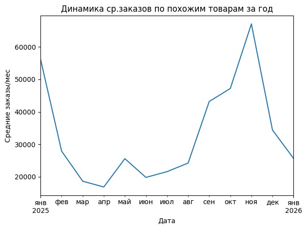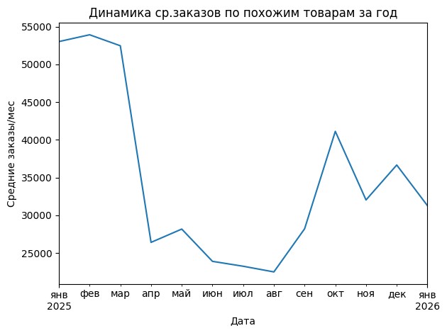 Изменение средних заказов на Ламоде по похожим товарам за год составило: -26.7%