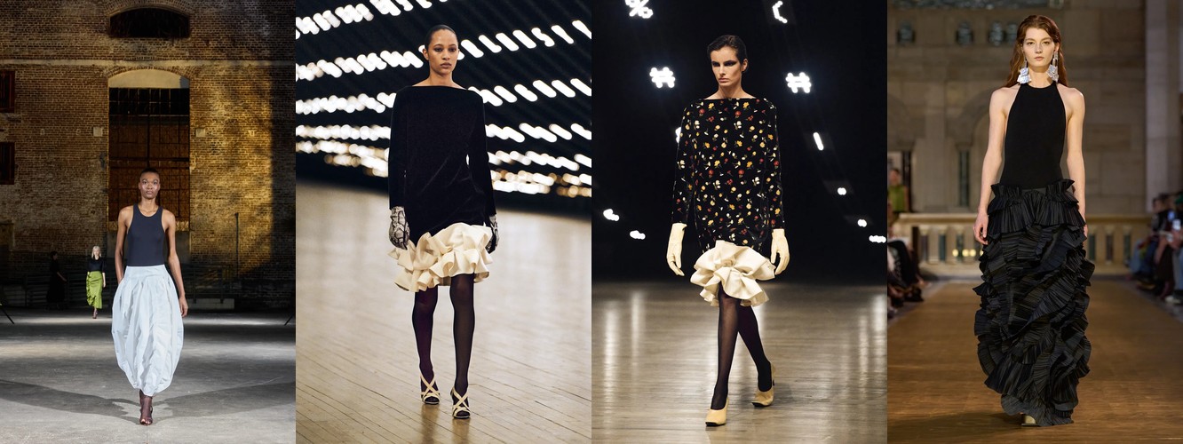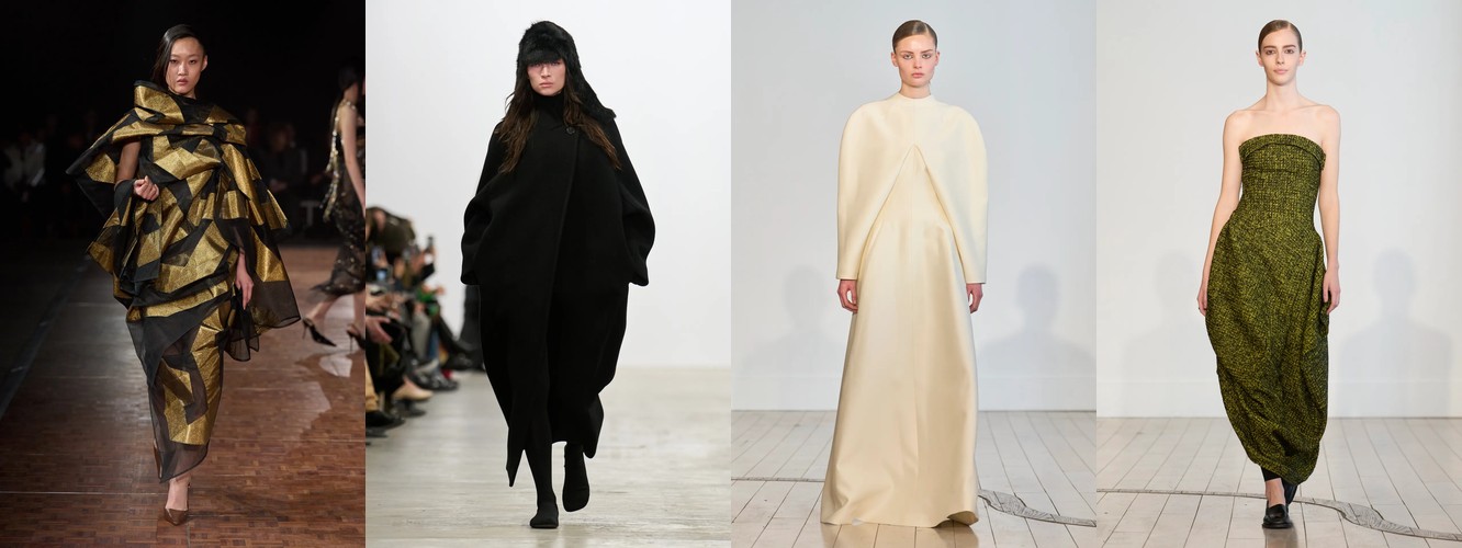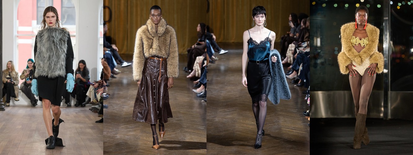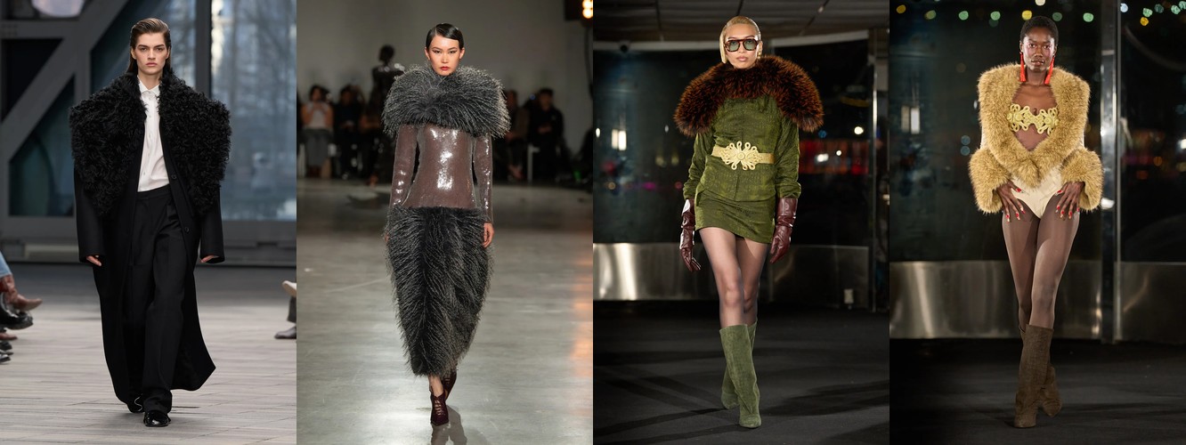 Однако объём не исчезает бесследно. Он перетекает и трансформируется: пышные рукава растут на 114,06%, меховые куртки — на 40,88%, искусственный мех — на 43,51%. Объём мигрирует из конструкции силуэта в акцентные зоны — плечо, воротник, рукав — превращаясь из тотальной стратегии укрытия тела в точечный театральный жест. Это уже не «кокон», а «рама» — объём, который подчёркивает тело, а не скрывает его.
