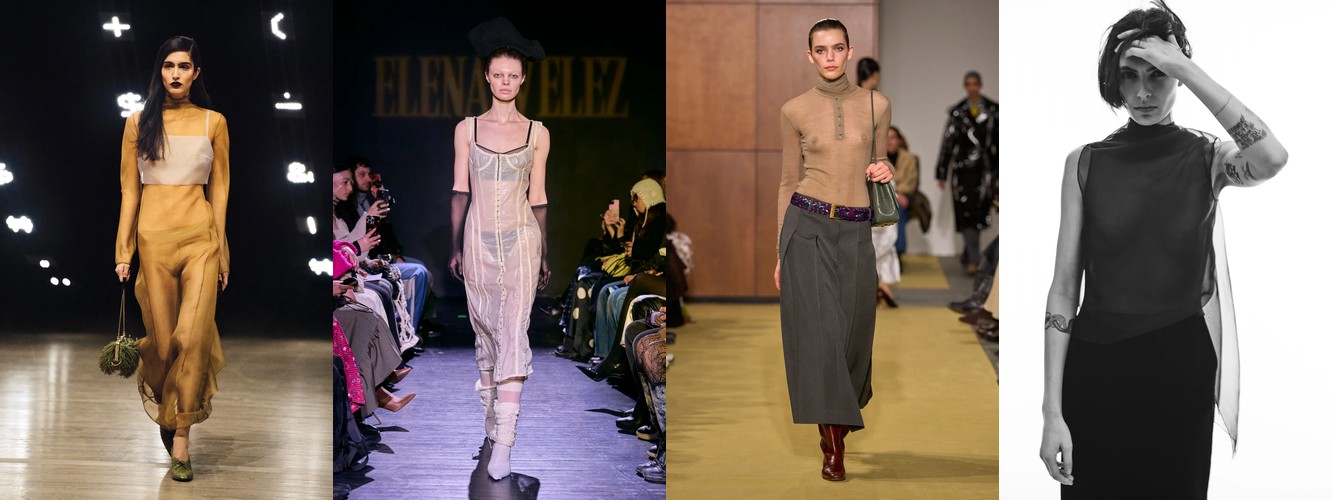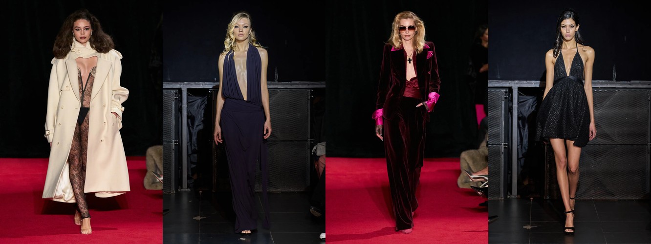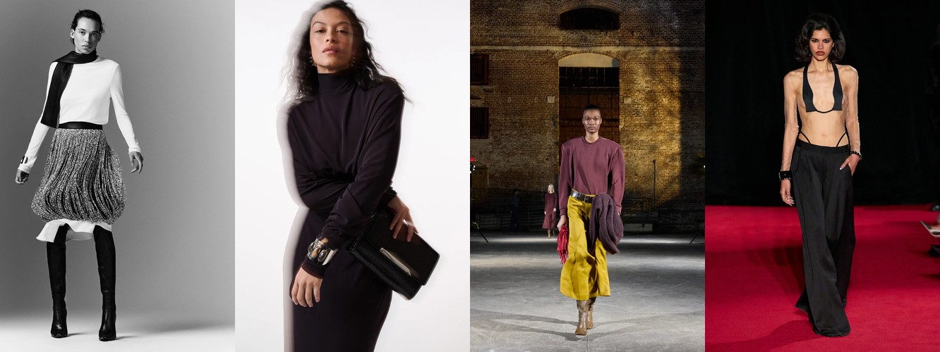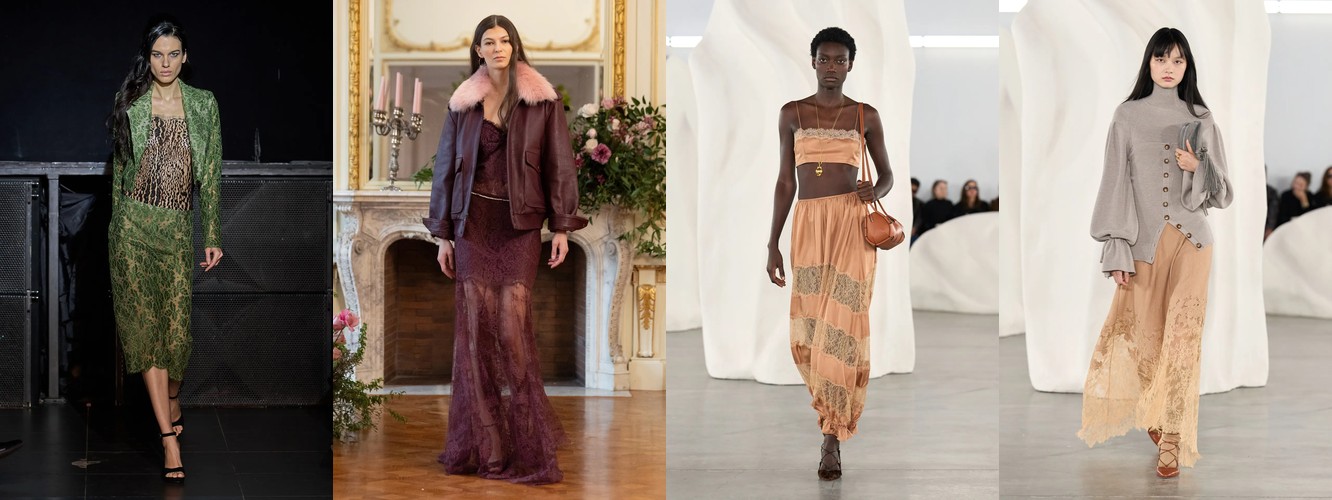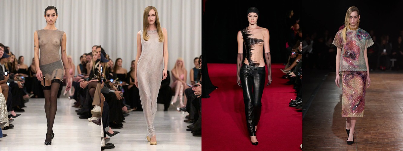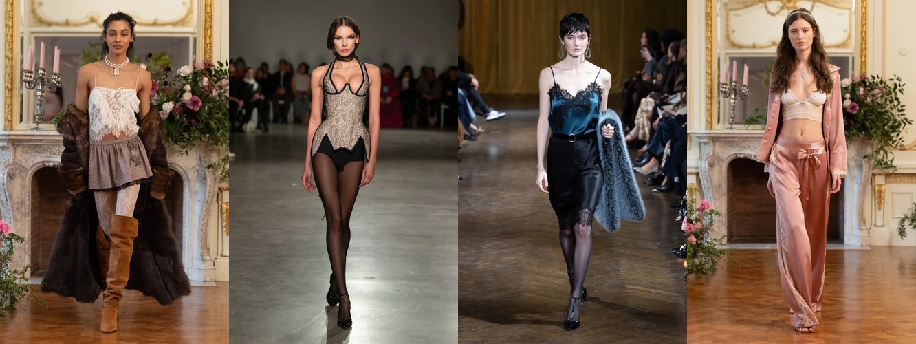 Гранж (+78,31%, охват с 11% до 23%) — в сочетании с рваными джинсами, шнуровкой и сеткой формирует субкультурный подтекст, альтернативный «чистой» сенсуальности. Два полюса нового сезона — будуар и подвал клуба — не конфликтуют, а дополняют друг друга как два способа отказа от корпоративной нормативности.