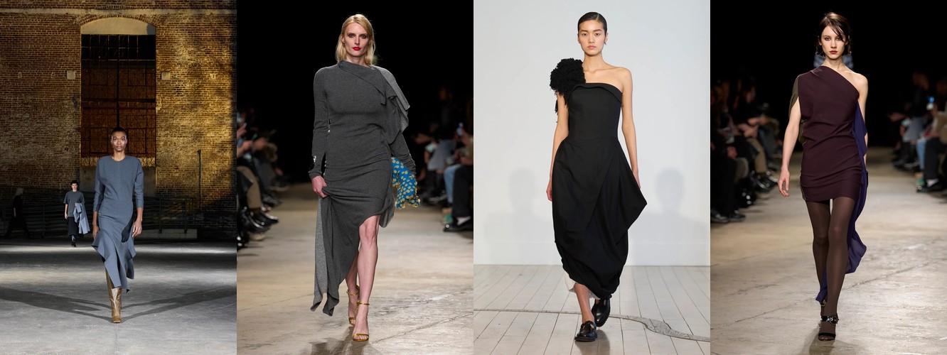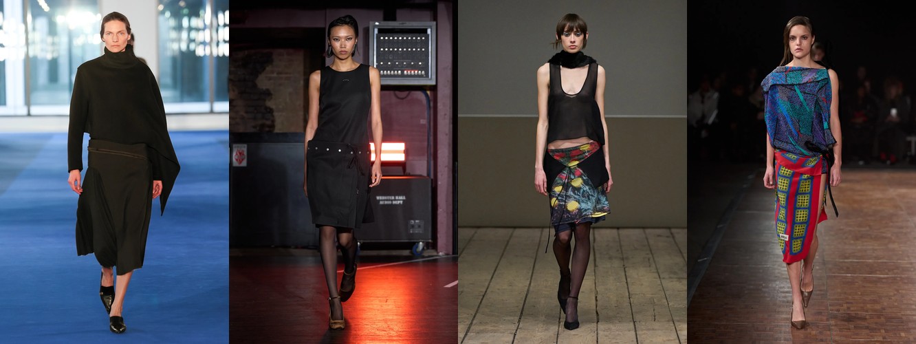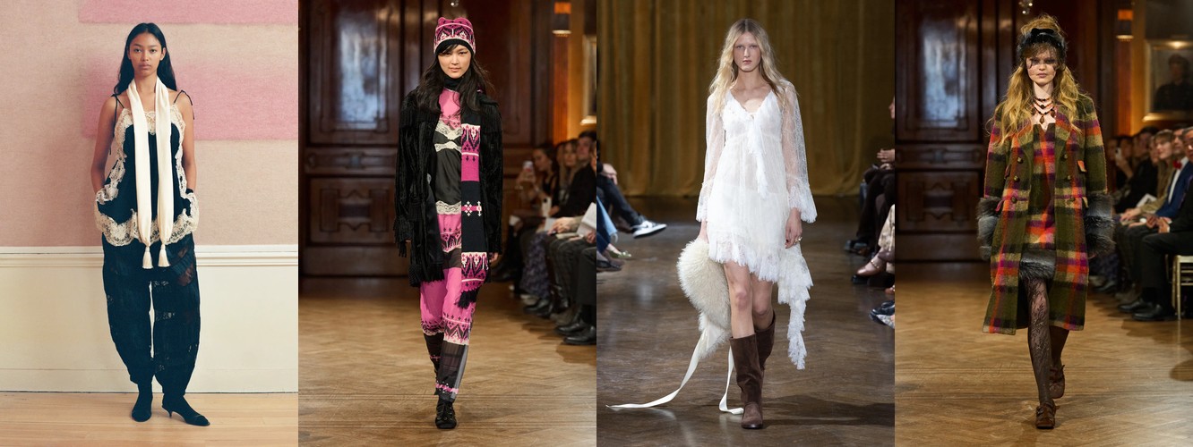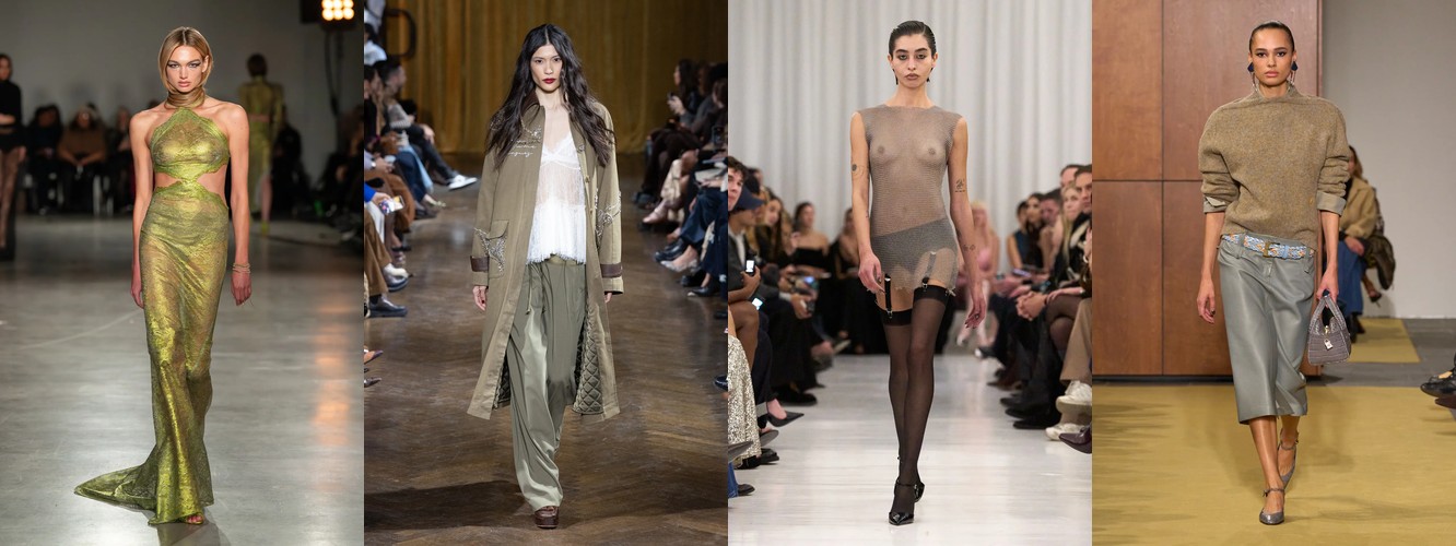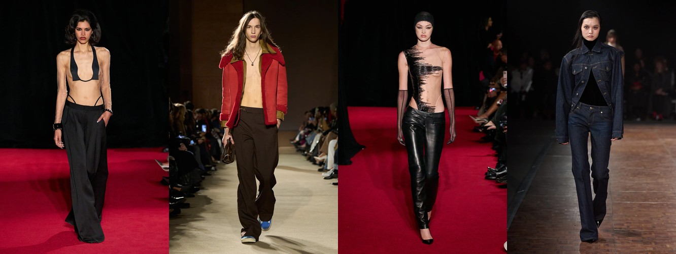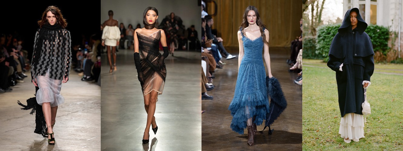 Гранж (+78,31%, охват с 11% до 23%) — в сочетании с рваными джинсами, шнуровкой и сеткой формирует субкультурный подтекст, альтернативный «чистой» сенсуальности. Два полюса нового сезона — будуар и подвал клуба — не конфликтуют, а дополняют друг друга как два способа отказа от корпоративной нормативности.