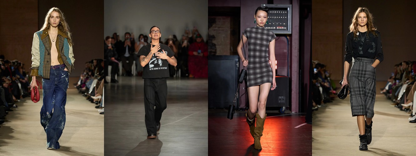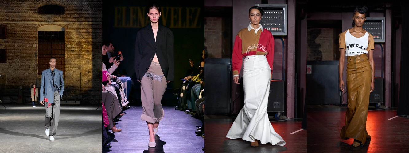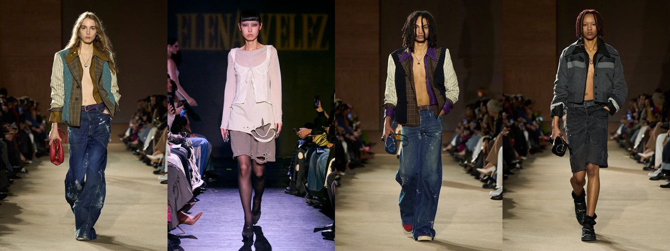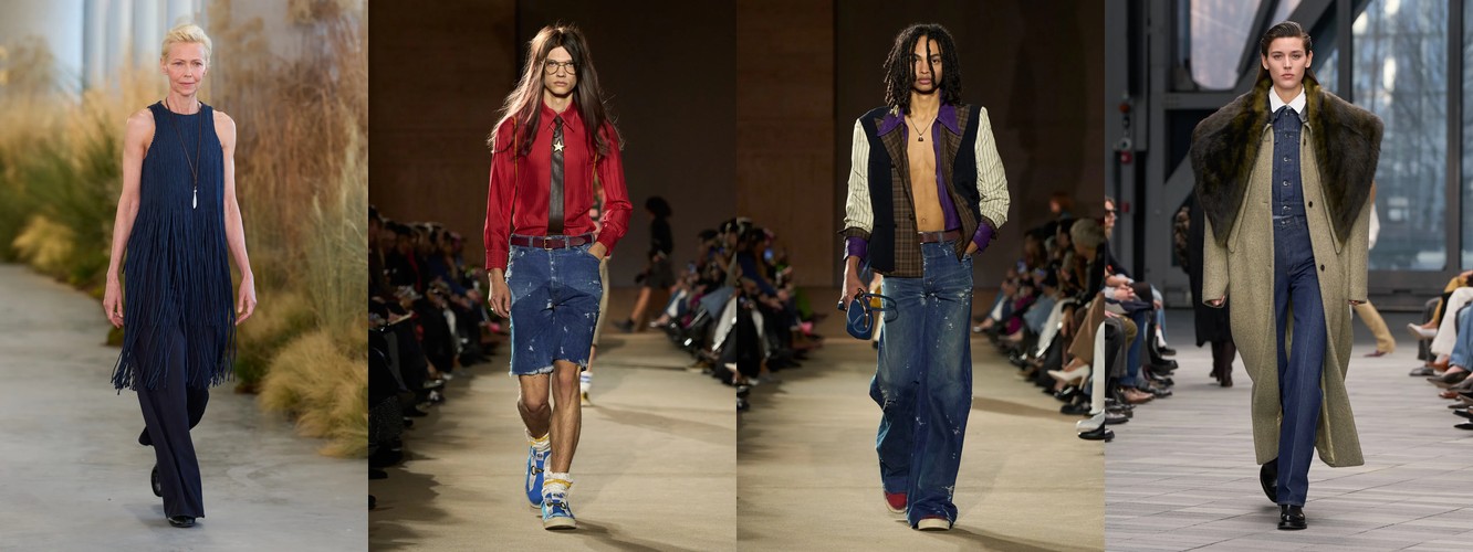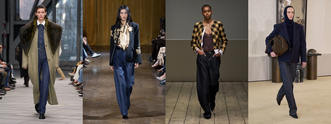 Деним перестаёт быть «демократичной базой» и становится полем для экспрессии и субкультурной маркировки. Ламинирование, потёртость, рваная текстура, перенос в юбочный формат — всё это признаки того, что дизайнеры используют деним как материал для трансгрессии, а не комфорта. В сочетании с ростом тегов «гранж» (+78,31%) и падением «преппи» (–48,55%) это формирует отчётливый вектор: от «хорошей девочки» к «плохой девочке», от Ральфа Лорена к Вивьен Вествуд.