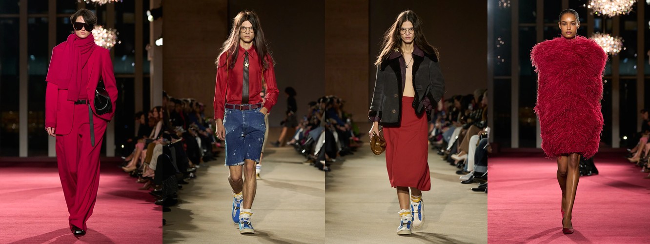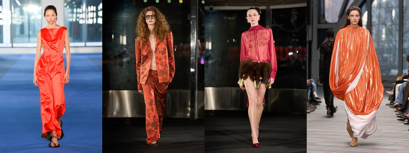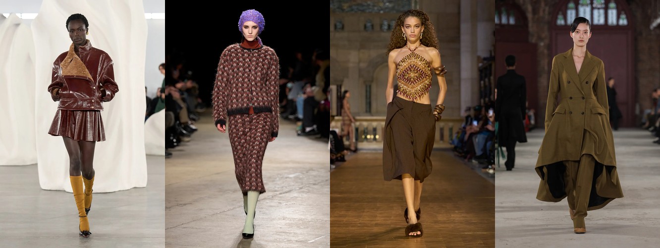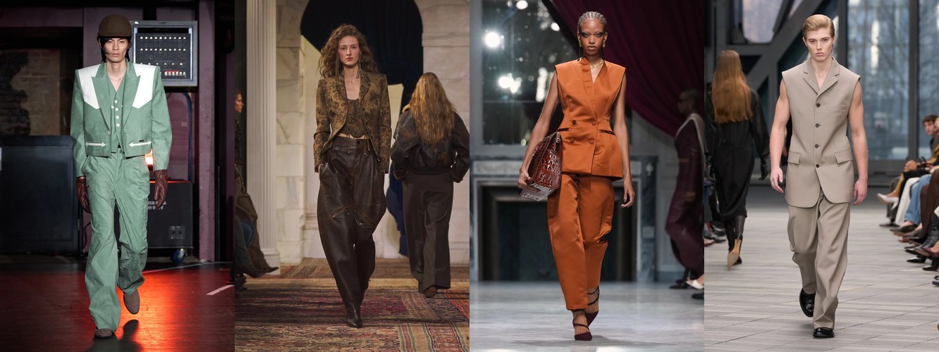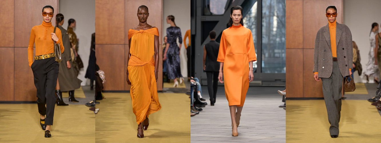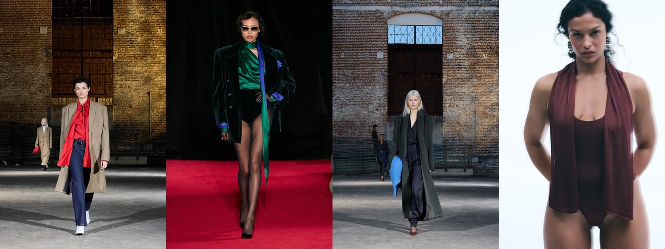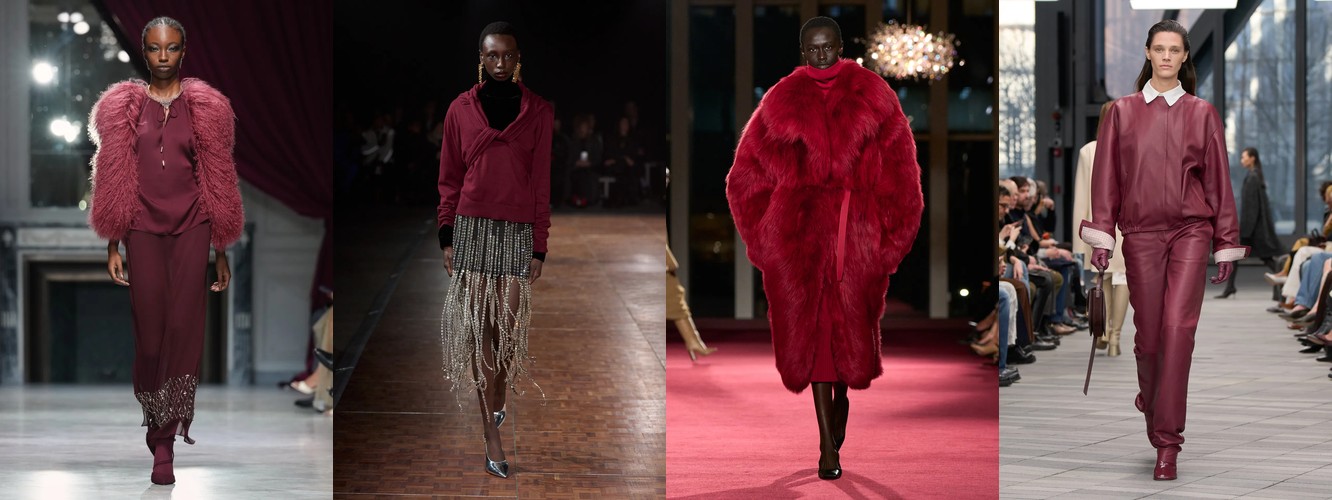 Суммарно палитра транслирует отказ от мягкой, «обволакивающей» нейтральности предыдущего сезона (серый, бежевый, бледный) в пользу контрастного, определённого высказывания: чёрный + глубокий синий + тёплый коричневый + красный. Это палитра уверенности, а не осторожности.