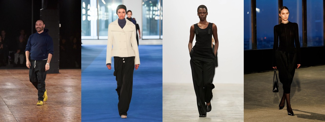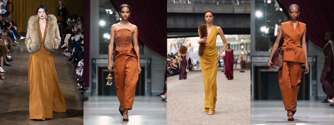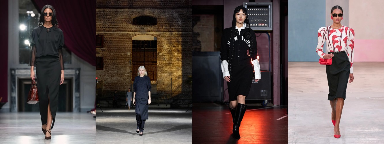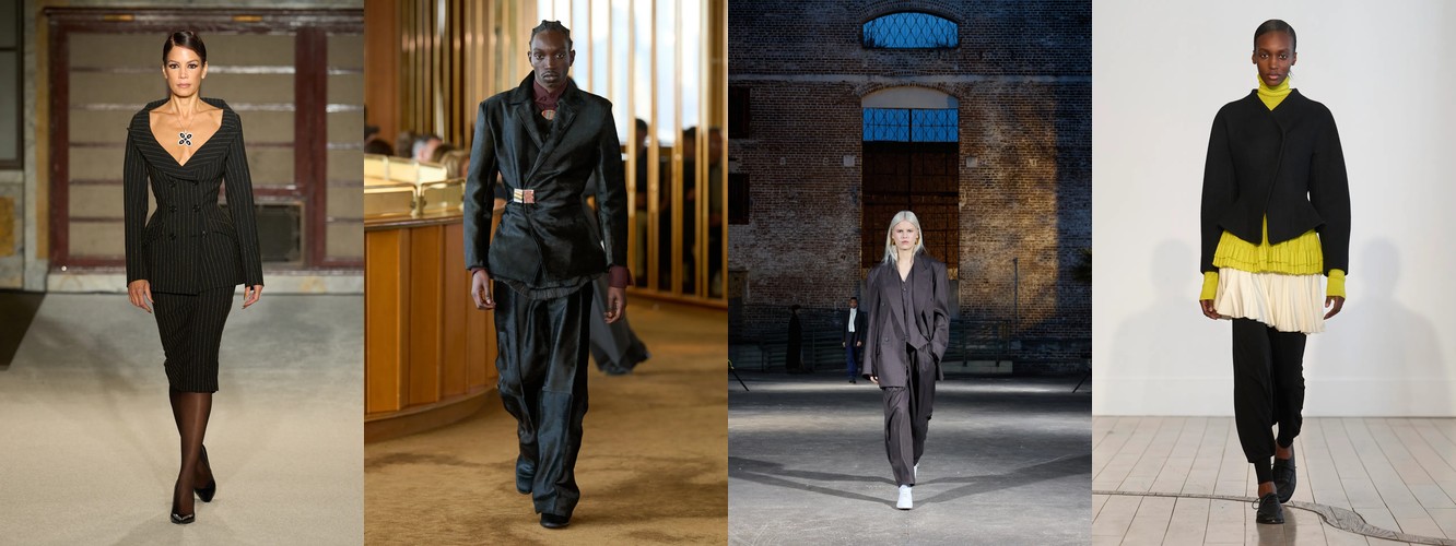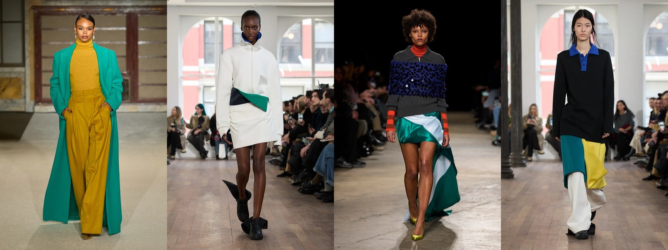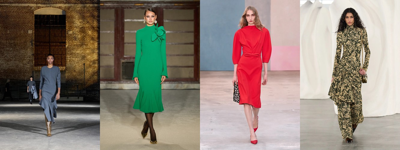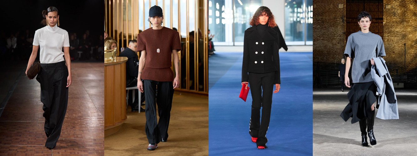 Суммарно палитра транслирует отказ от мягкой, «обволакивающей» нейтральности предыдущего сезона (серый, бежевый, бледный) в пользу контрастного, определённого высказывания: чёрный + глубокий синий + тёплый коричневый + красный. Это палитра уверенности, а не осторожности.