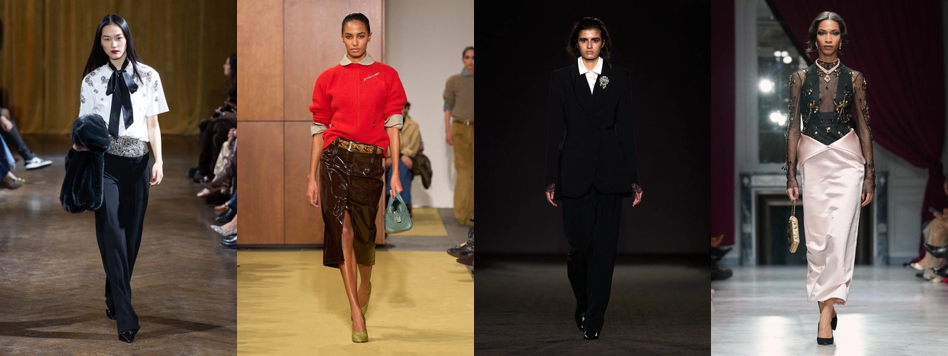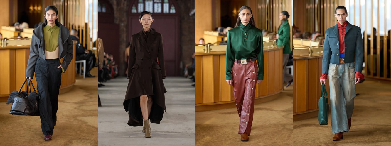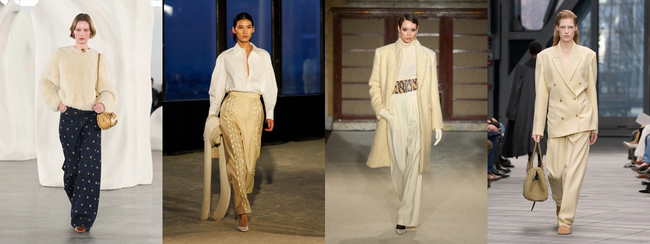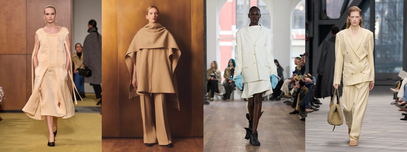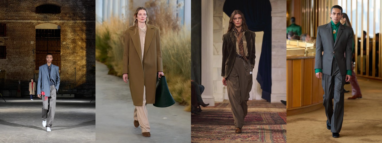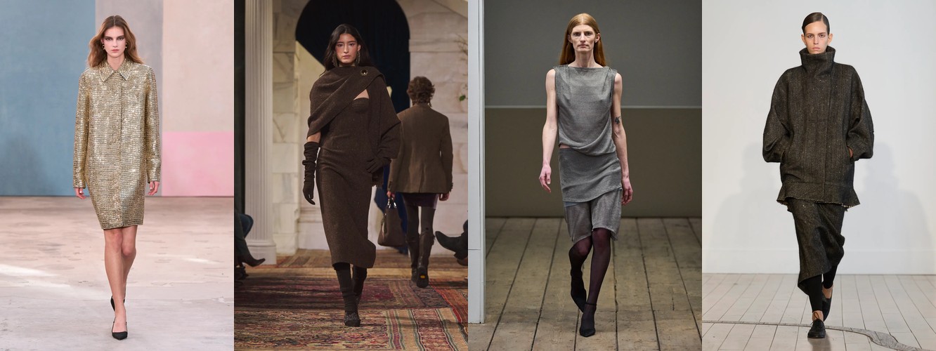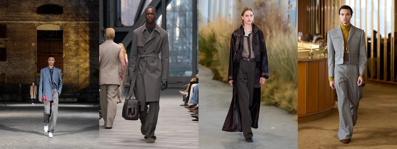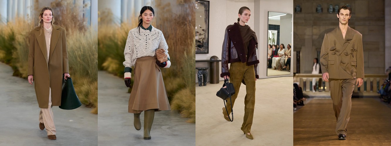 Героиня осени-зимы 25–26 — это женщина в режиме самозащиты. Она носит оверсайз пальто до пола, блейзер с широкими плечами, костюм, свитер крупной вязки, брюки широкого кроя. Её палитра — серебристые серые, сдержанные бежевые, кипенно-белый. Она выбирает твид и трикотаж. Её социальная роль — «компетентный профессионал»; её эмоциональное сообщение — «я неуязвима». Это был наряд пост-пандемийного мира, обмундирование для неопределённости.