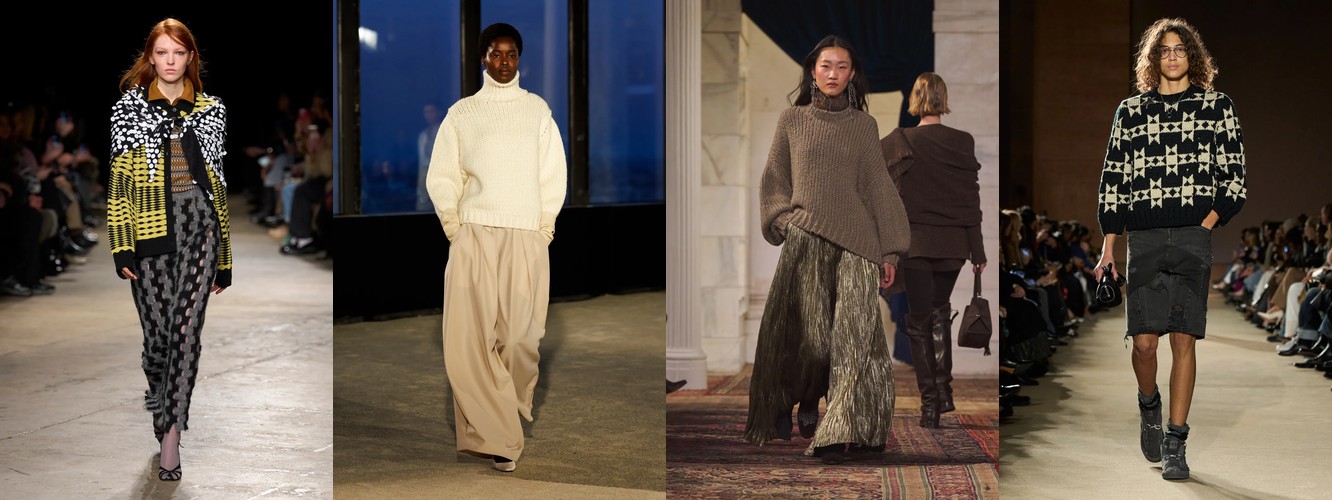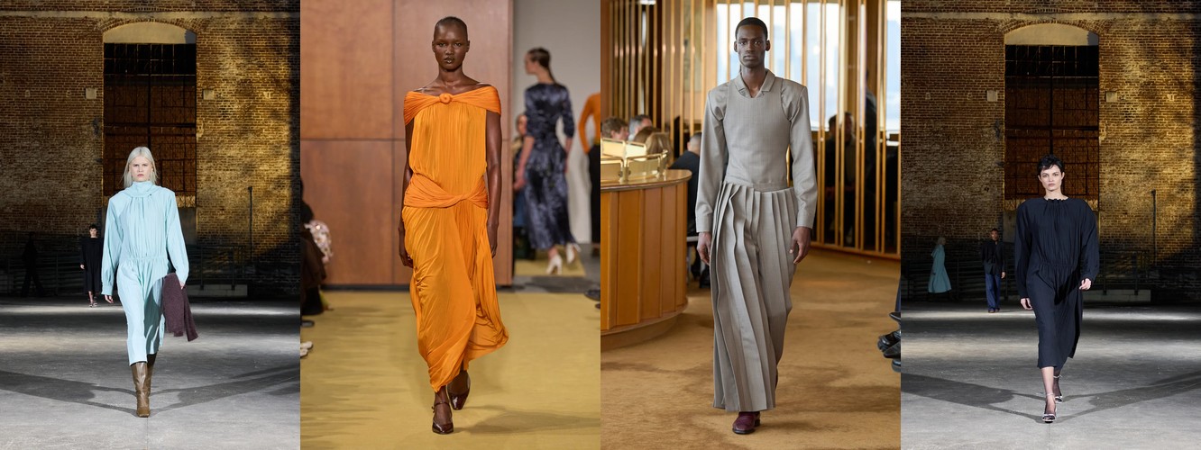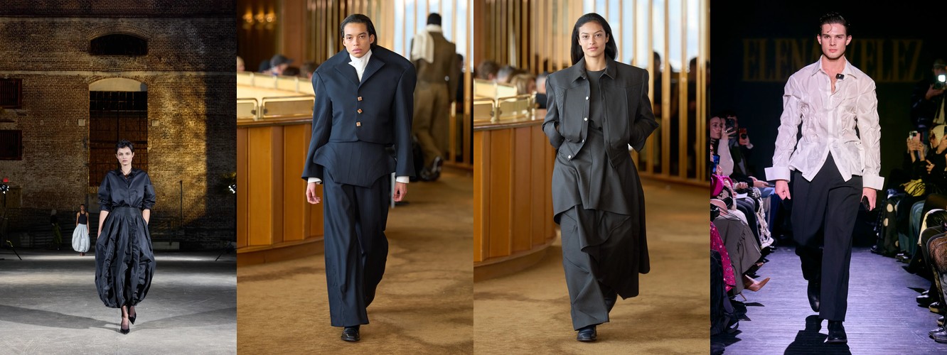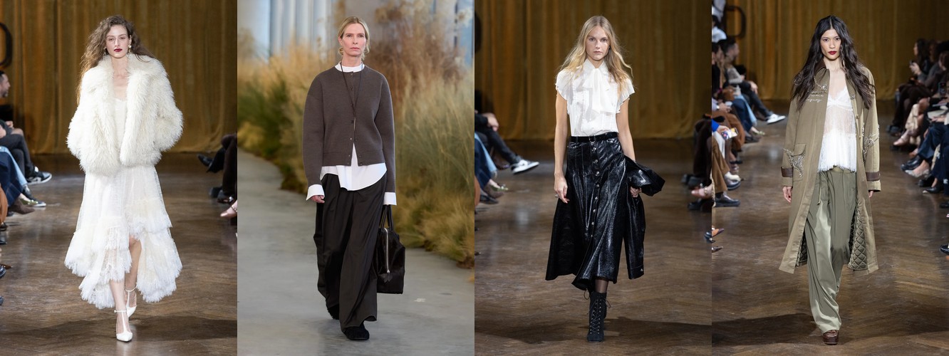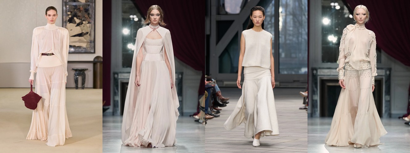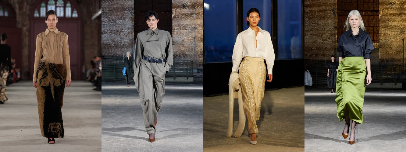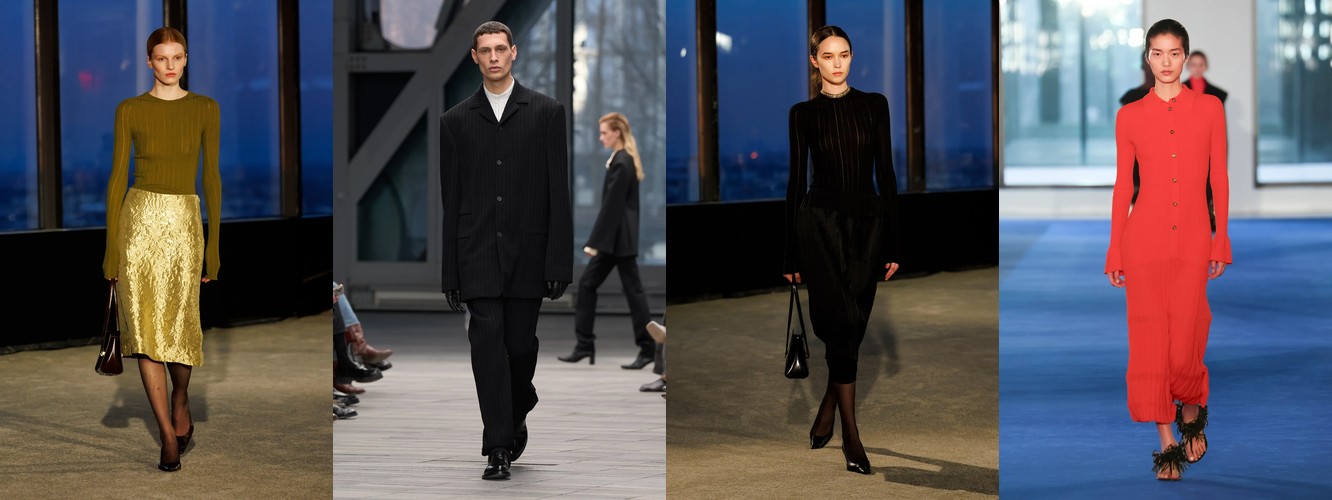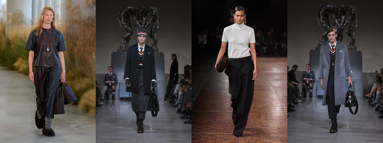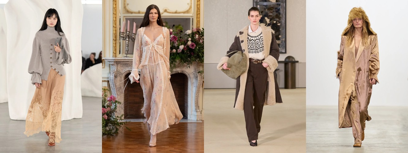 Героиня осени-зимы 25–26 — это женщина в режиме самозащиты. Она носит оверсайз пальто до пола, блейзер с широкими плечами, костюм, свитер крупной вязки, брюки широкого кроя. Её палитра — серебристые серые, сдержанные бежевые, кипенно-белый. Она выбирает твид и трикотаж. Её социальная роль — «компетентный профессионал»; её эмоциональное сообщение — «я неуязвима». Это был наряд пост-пандемийного мира, обмундирование для неопределённости.