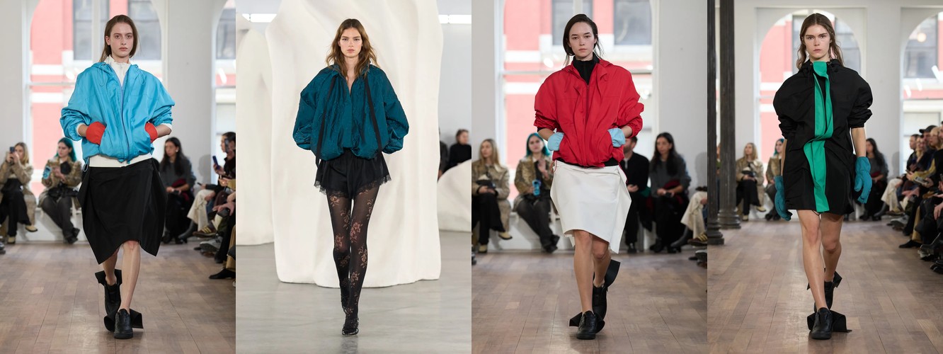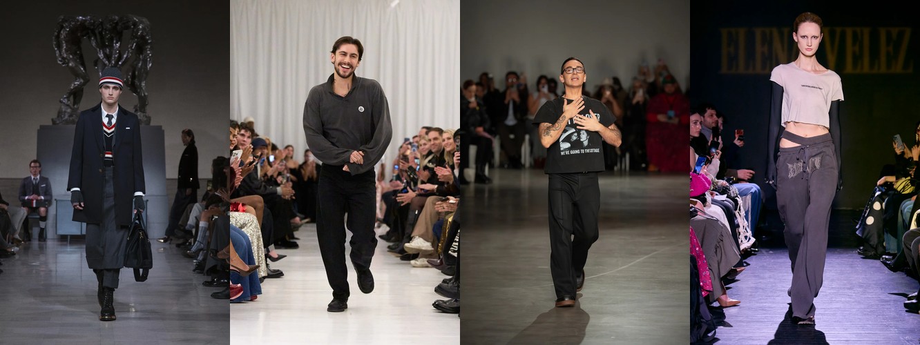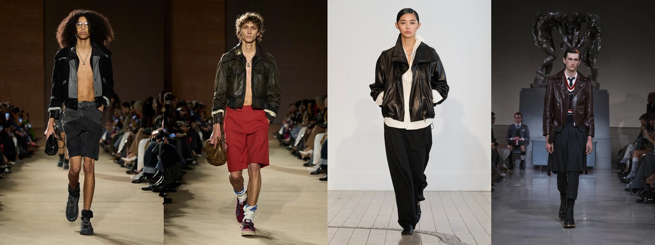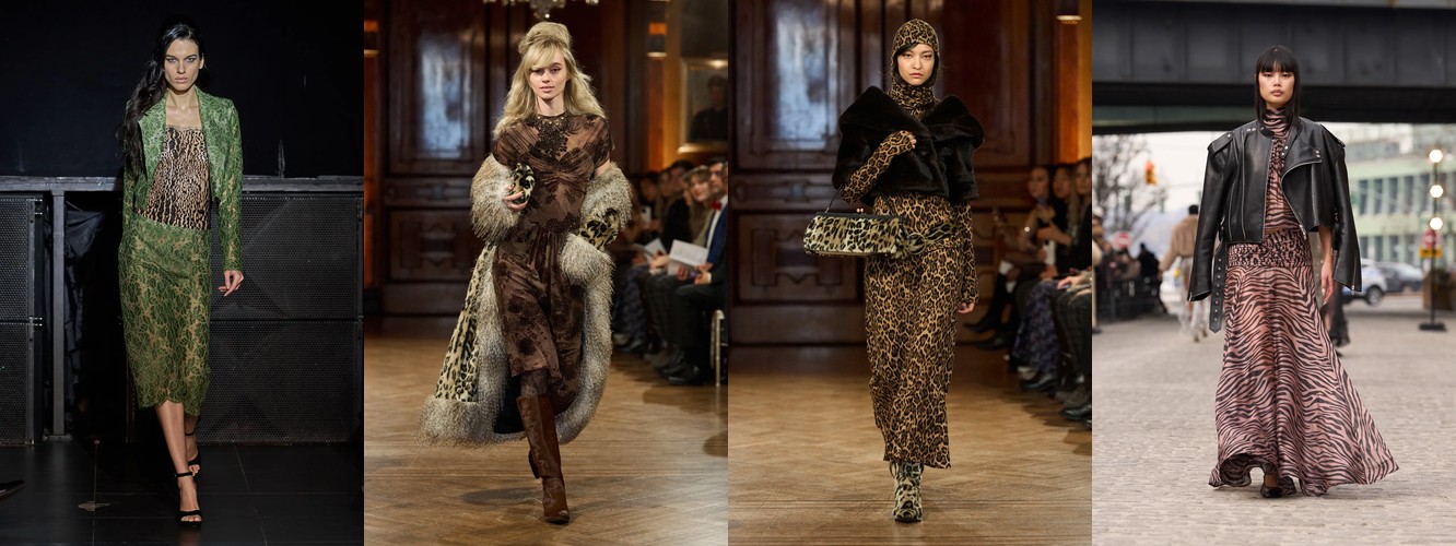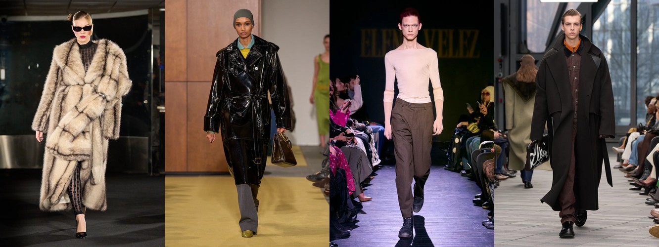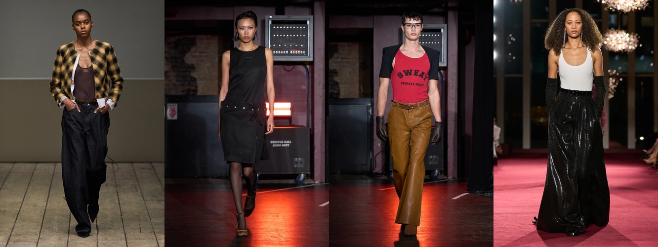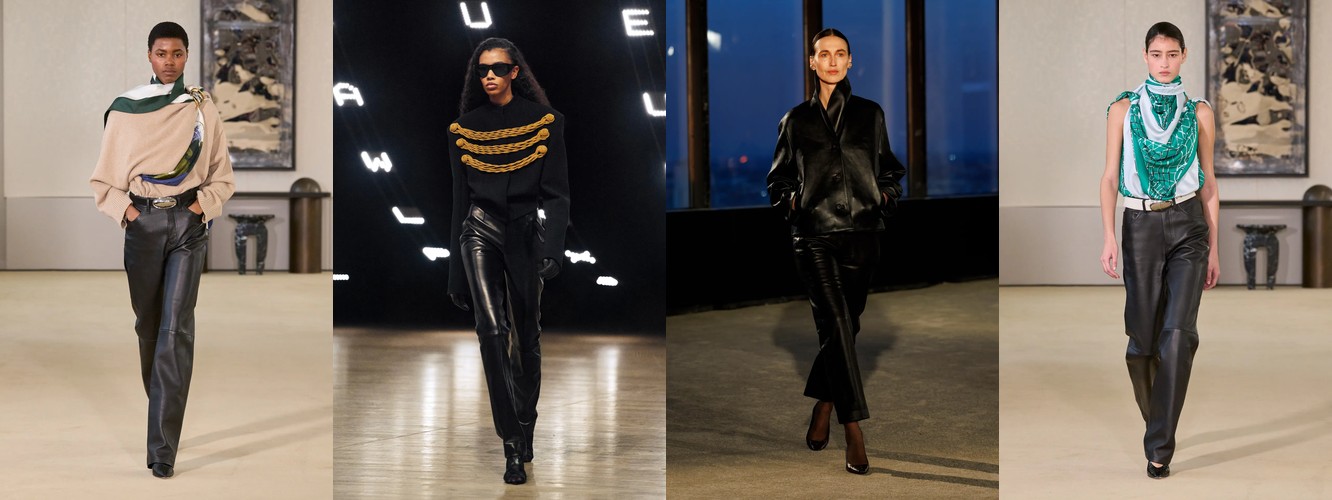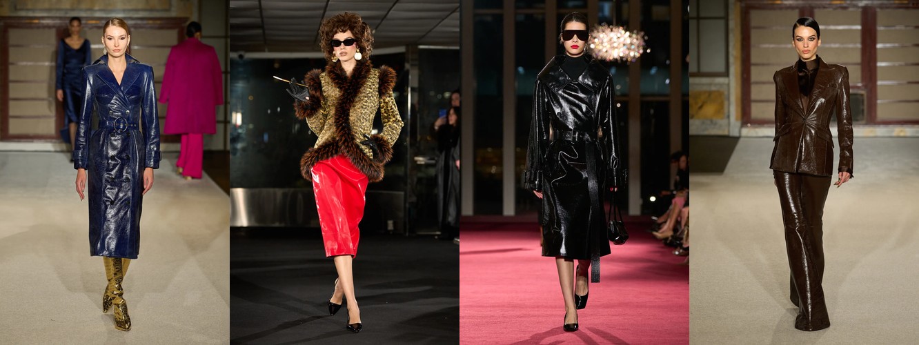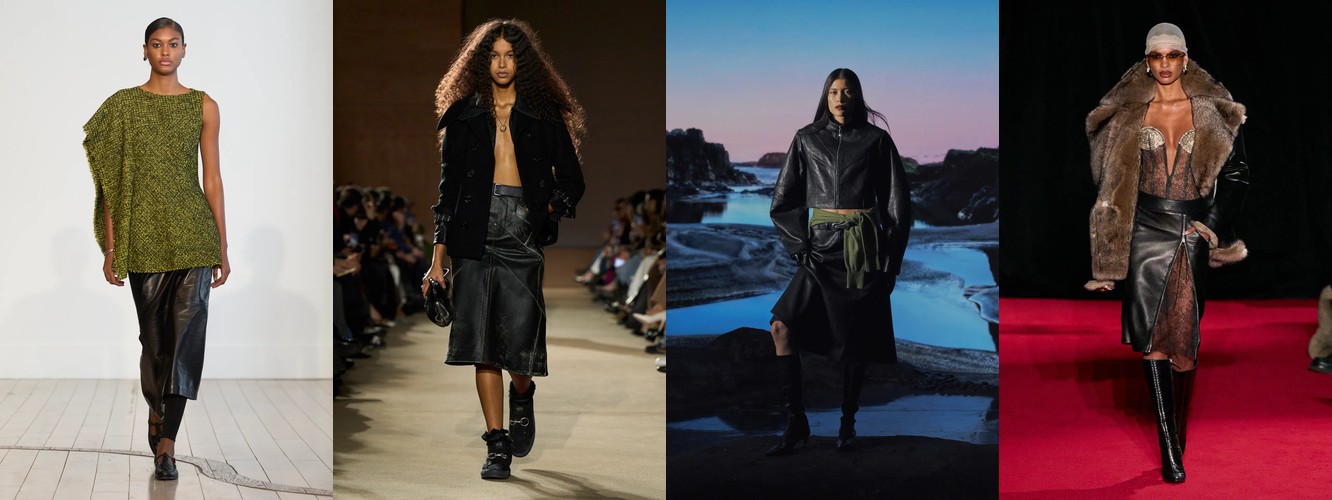 Параллельно данные фиксируют ренессанс анатомического силуэта: корсет (+62,96%), бюстье (+66,06%), юбка-карандаш (+35,93%), платье-карандаш (+62,96%), леггинсы (+53,37%), скинни-джинсы (+156,25%, пусть и с минимальной базы). Косуха, самая body-conscious из всех кожаных курток, удваивает присутствие (+88%). Это не ретро-цитирование — это переосмысление отношений между одеждой и телом. После нескольких сезонов, когда мода предлагала «укрытие» как комфорт и безопасность в турбулентном мире, Нью-Йорк декларирует: тело — это не то, что нужно прятать, а то, через что транслируется сообщение.