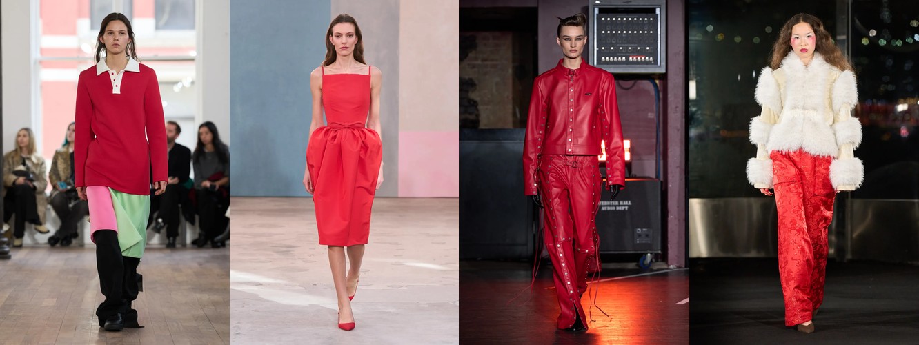 Бордовая гамма распадается: «Каберне» теряет 42,49%, но «Красный георгин» растёт на 61,21%. «Высокая мода» (красный) прибавляет 58,59%. Если в прошлом сезоне бордовый присутствовал как «приглушённый», «сдержанный» красный, то теперь он либо усиливается до чистого красного, либо уходит. Мода отказывается от полутонов в пользу определённости.