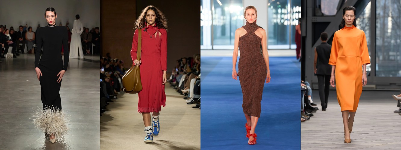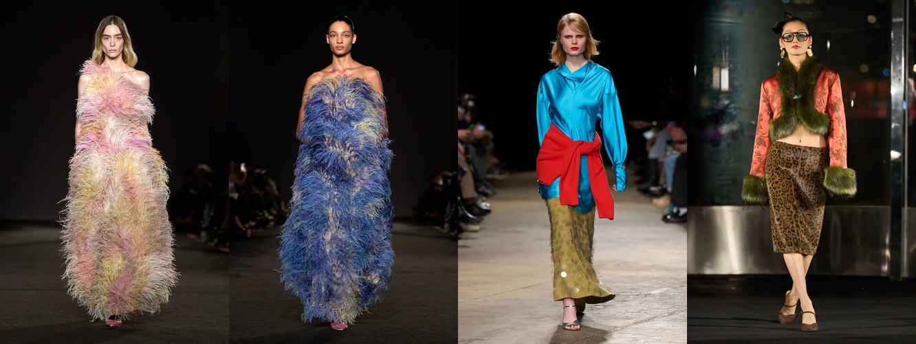 Им на смену приходят фактуры, апеллирующие к тактильности, чувственности и театральности: бархат (+104,72%, с ростом охвата на 23,81%), искусственный мех (+43,51%, охват +26,98%), мех (+24,93%), перья (+201,96% доли, охват с 13% до 30%), атлас (атласное платье +19,22%, атласная юбка +67,78%), лакированная кожа (+43,69%). Вельвет скромно, но растёт (+11,98%).